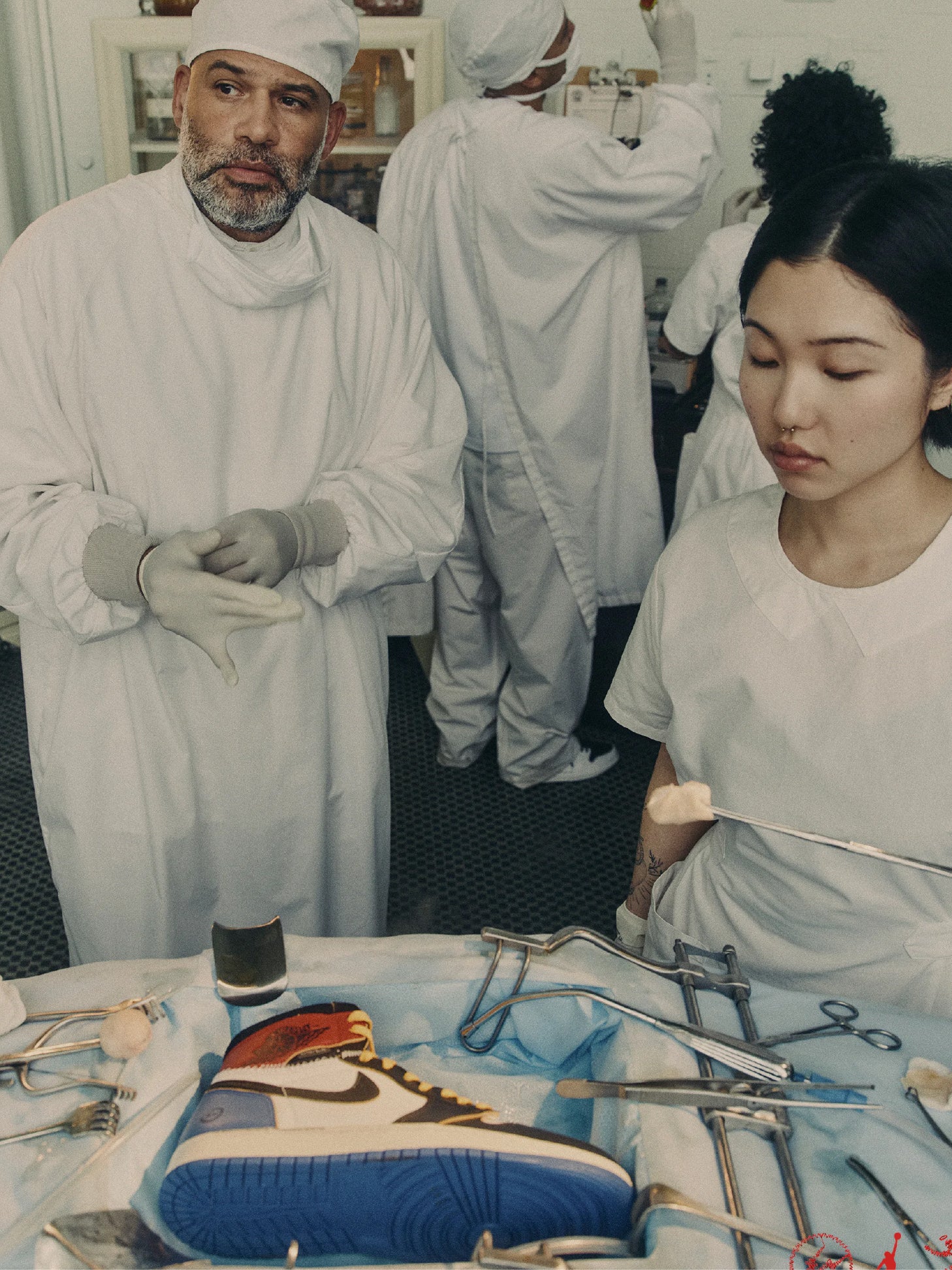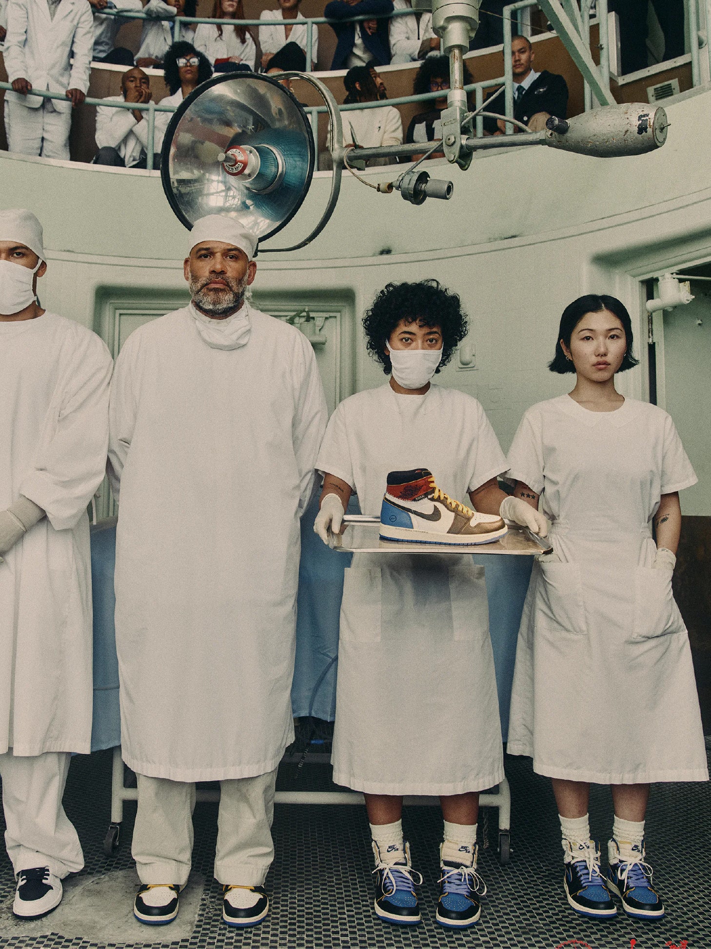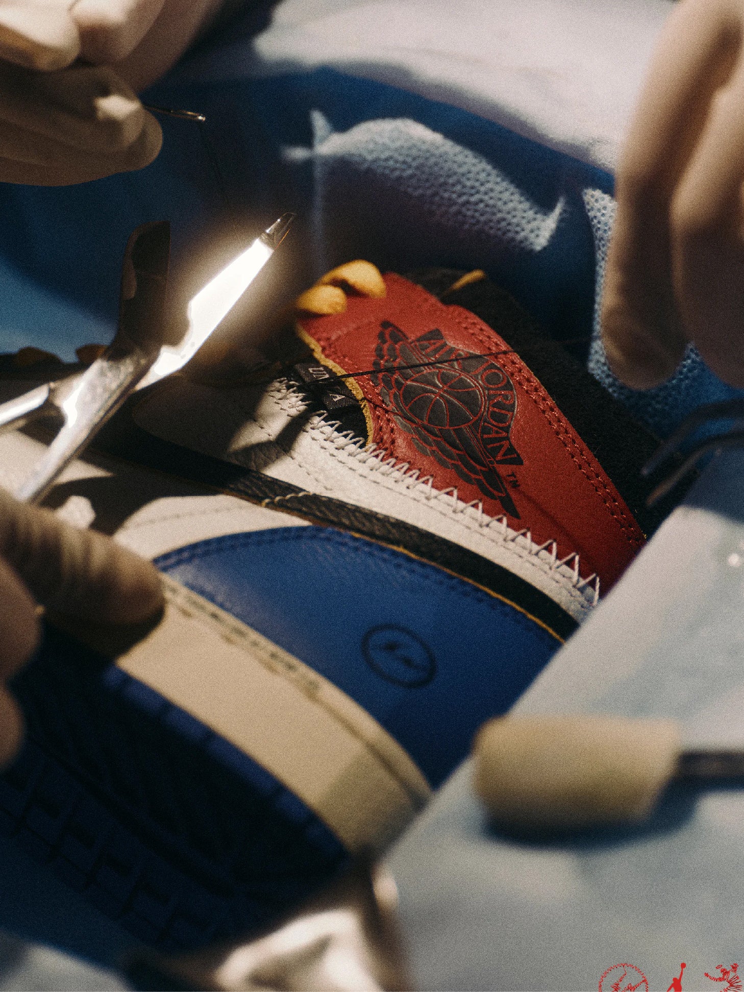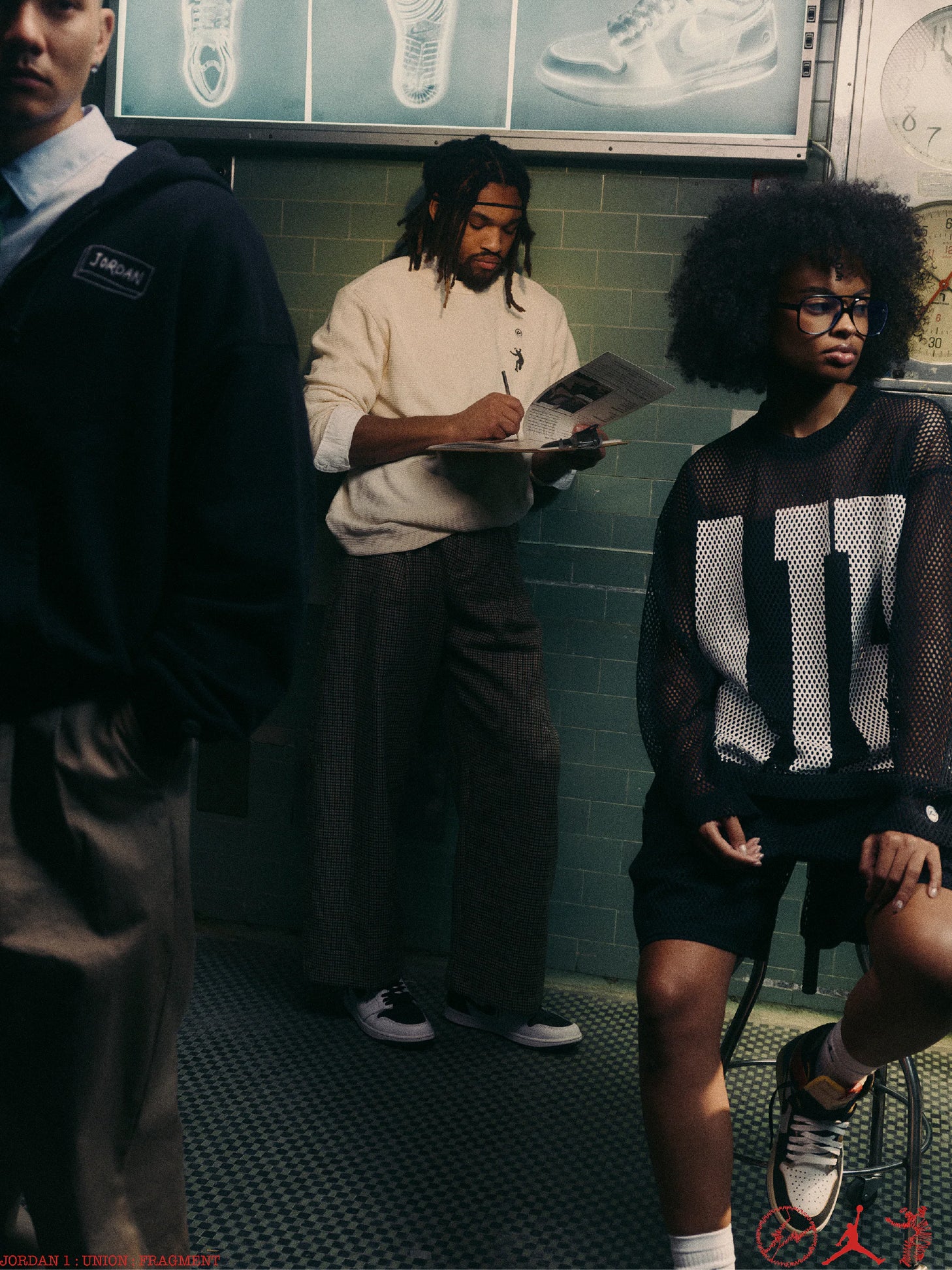 La costura visible —el Air Jordan 1: High OG SP Union : Fragment — simboliza el intercambio sostenido entre Tokio y Los Ángeles. Es puente entre dos escenas que crecieron en paralelo.