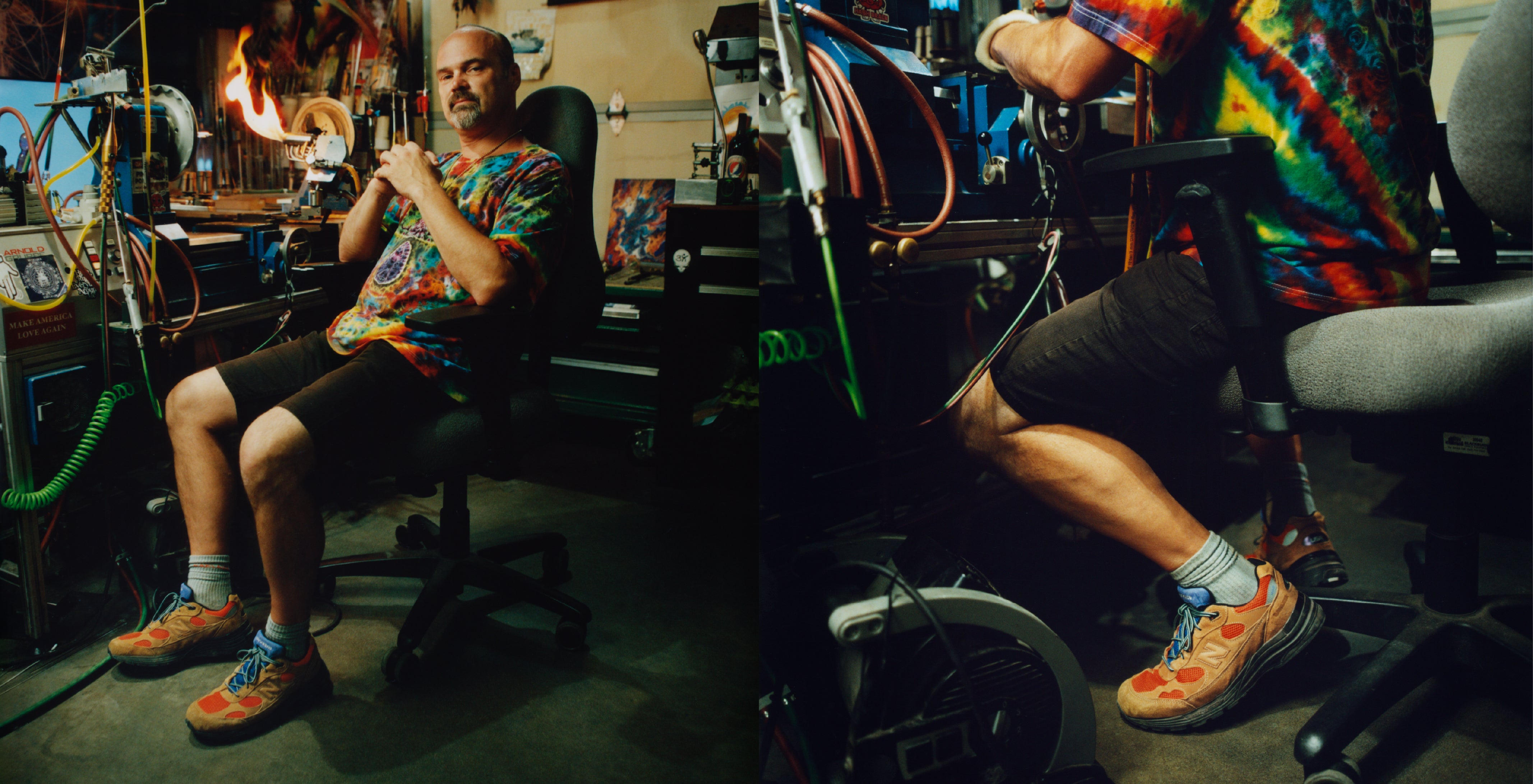 El 992, una de las siluetas más celebradas de New Balance, se convierte aquí en un lienzo para expresar una dualidad que define a Bronson: la rudeza del workwear y la sensibilidad artística del detalle hecho a mano.