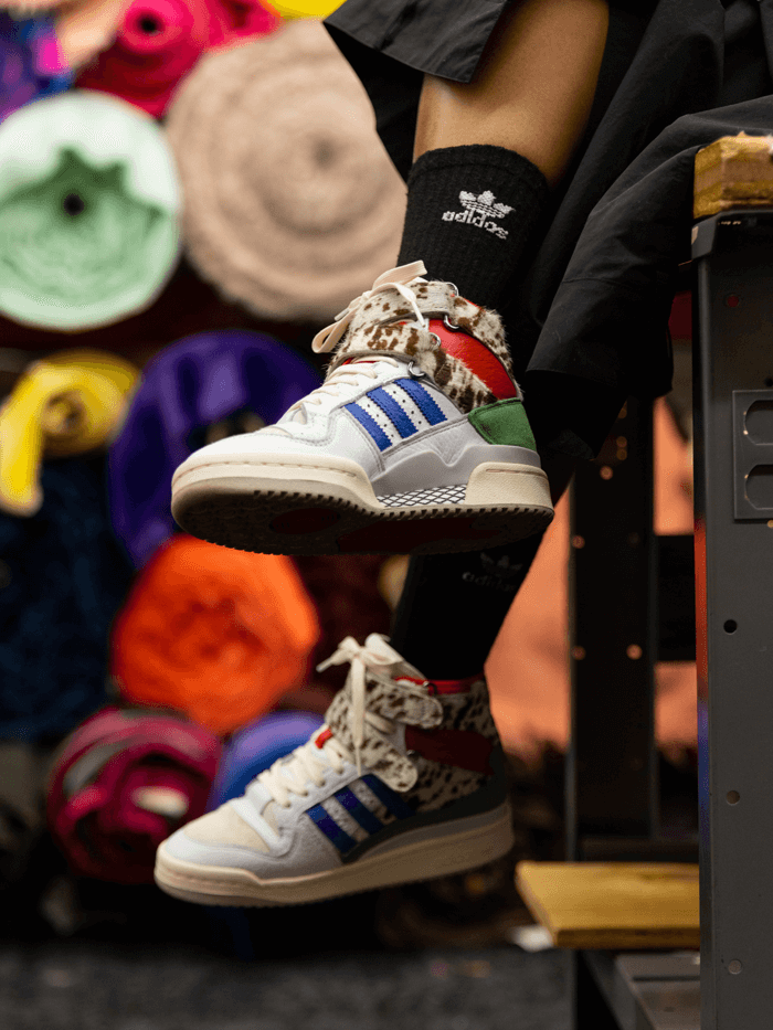 Un giro lujoso al clásico diseño y estilo de las Forum Hi, que se transforma con diseños basados en el lujo que se pueda vestir casualmente a través de una combinación de streetwear y moda con materiales en cuero, estampados y colores.