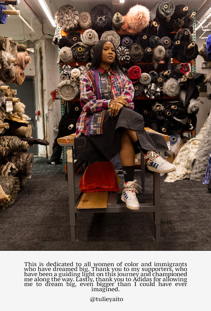 "Tulie has such a unique ability to blend low and high brow, use her expert eye to rediscover an iconic shoe and do it all while giving homage to her roots through color and contrast." Esaie Witherspoon, senior product manager at adidas