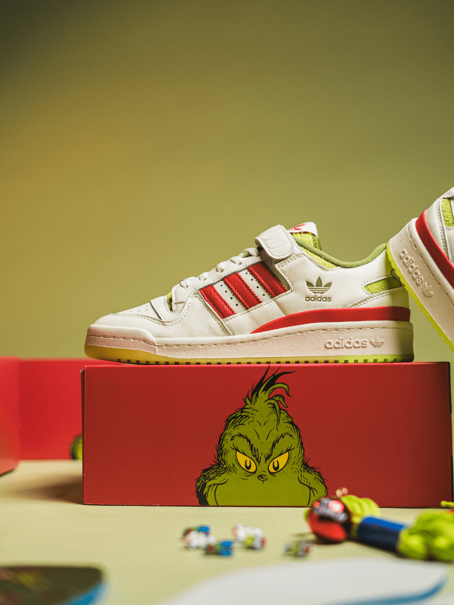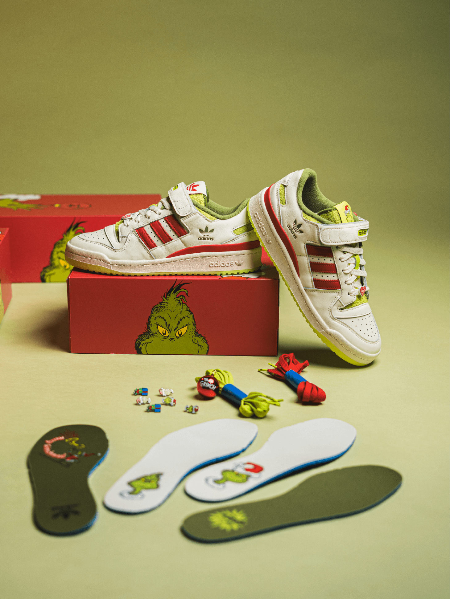 El 2022 dio inicio a esta historia donde se representó la figura de este antagonista de color verde que marcó la infancia de muchos a través de la silueta adidas Originals x The Grinch. Su gran auge dio lugar para volver en este 2023, representando los auténticos personajes que hacen de esta película una de las más alusivas en la navidad.