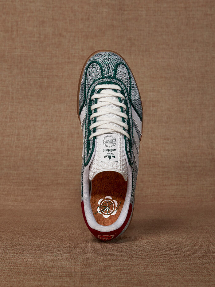 Los métodos artesanales con mentalidad ecológica de los adidas Sean Wotherspoon Gazelle Indoor dan como resultado un patrón intrincado, verde y blanco, en toda la silueta, que se transforma junto a los detalles translúcidos en la suela y una plantilla de corcho, dando lugar a la creación de una de sus colaboraciones más innovadoras hasta la fecha.
