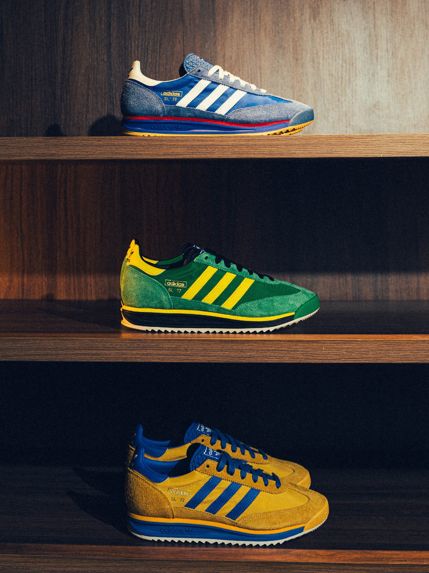 Los adidas Originals SL 72 RS llegan con su velocidad característica en tres clásicos colorways: OG azul, amarillo y verde que, en conjunto con su confección y detalles, vuelven para contar una historia a través de la reelaboración en una nueva generación.