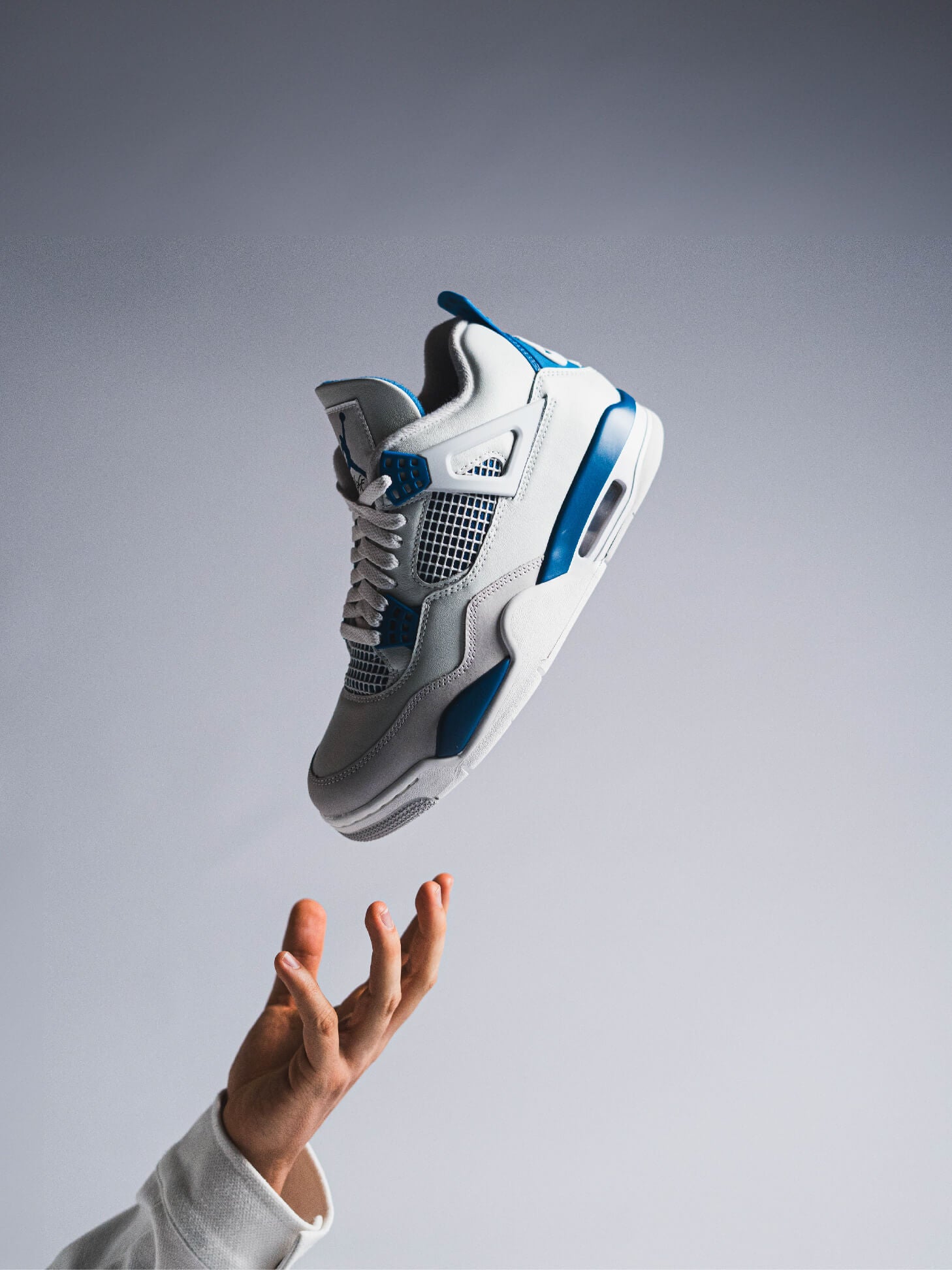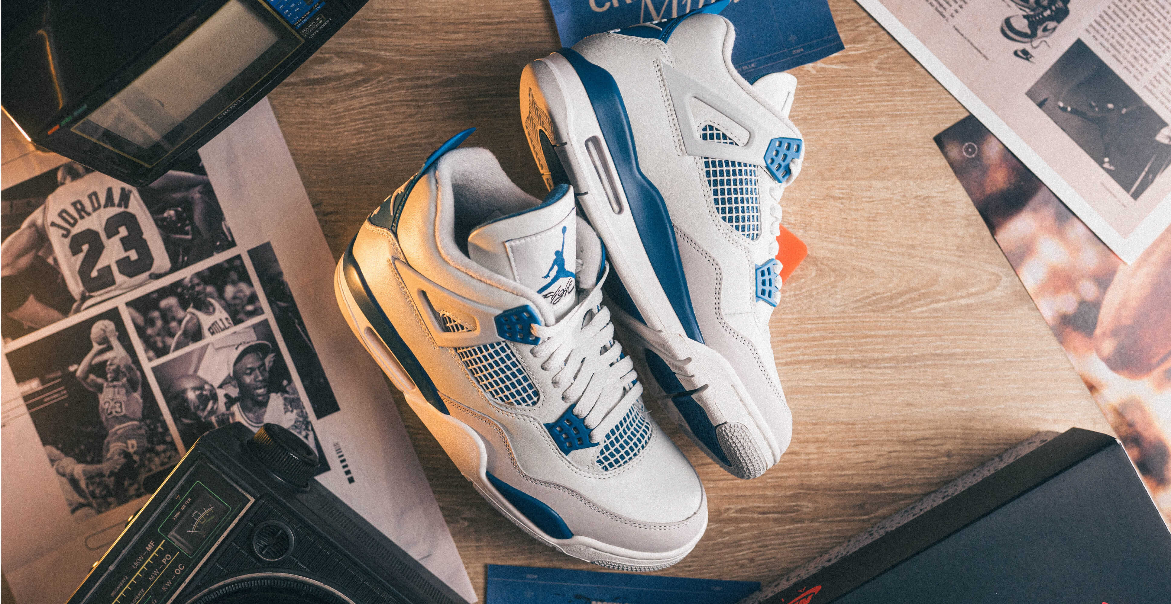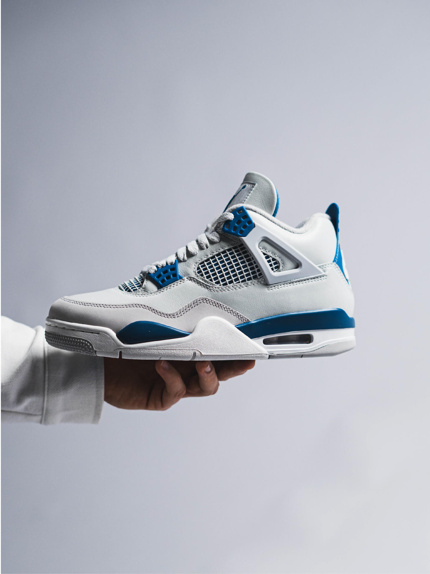 Una versión de los Air Jordan 4 que se enfoca en los materiales clásicos como el cuero premium en la parte superior y la característica malla, que se contrasta con en su emblemático tono “Azul Militar”, para complementarse con un conjunto de detalles que lo han convertido en una silueta trascendental e icónica del baloncesto.