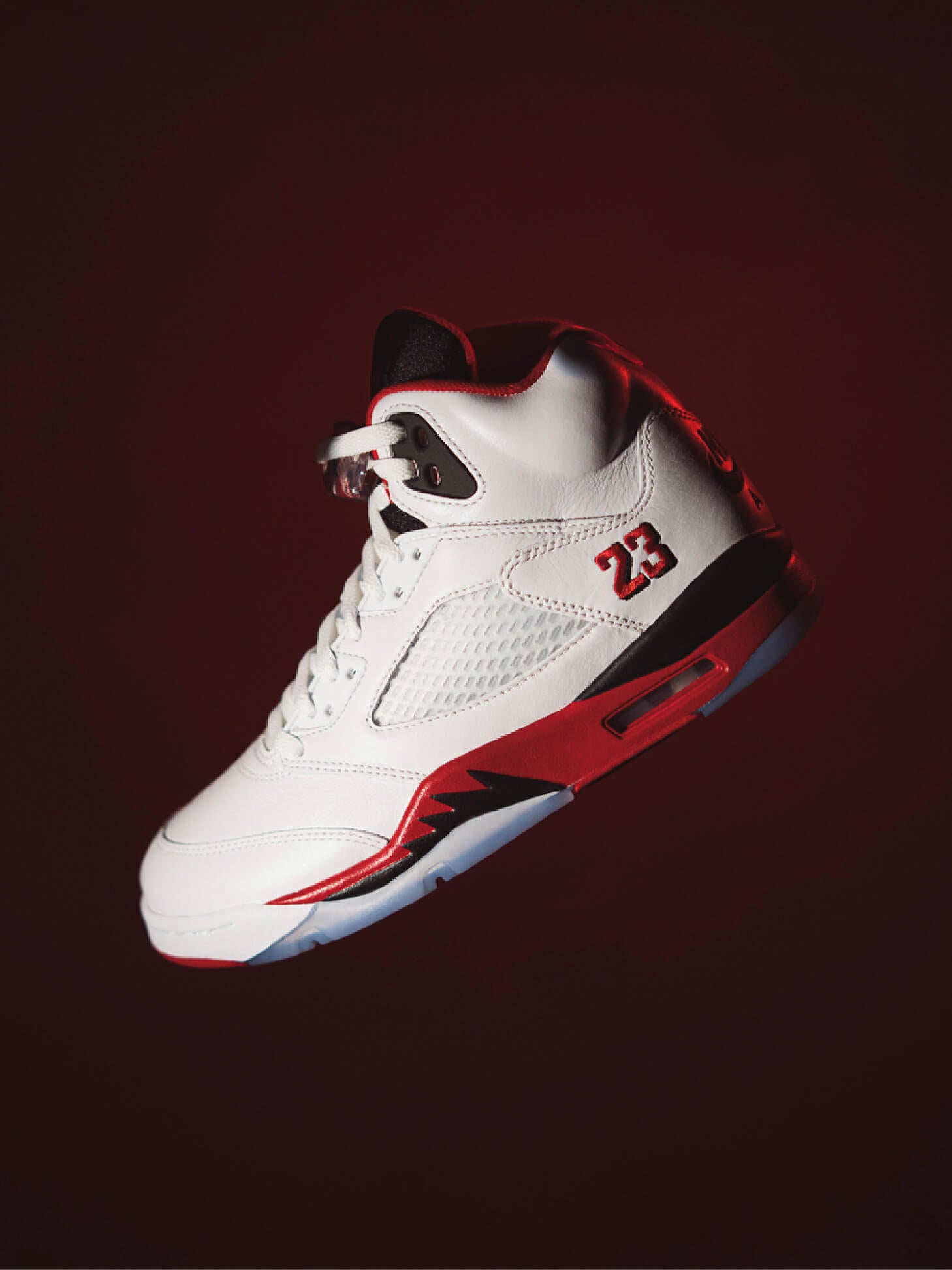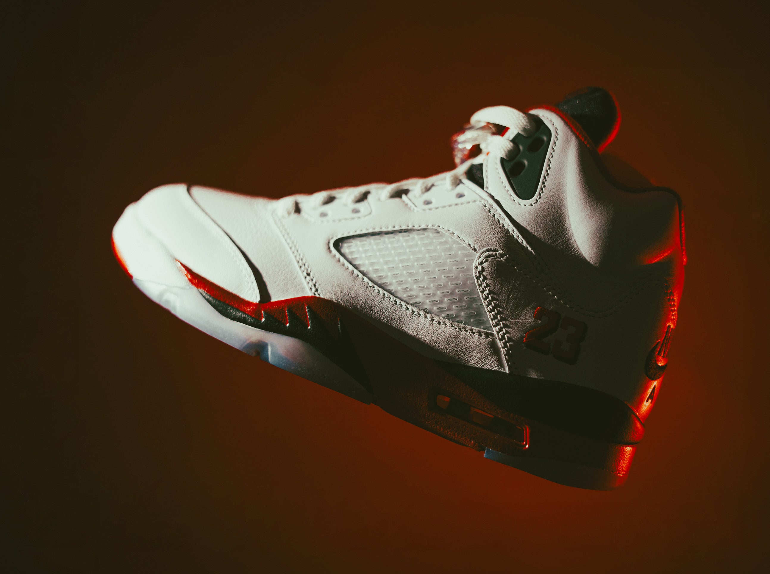 Concebida originalmente en 1990, la Air Jordan 5 marcó un punto de inflexión en la evolución del calzado de alto rendimiento. Inspirado en los cazas P-51 Mustang de la Segunda Guerra Mundial, el diseño introdujo por primera vez las emblemáticas “shark teeth” en la entresuela: un guiño aerodinámico que convirtió a la silueta en un emblema de potencia y velocidad.