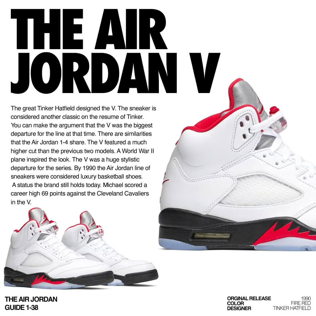 Cuando apareció en 1990, el modelo no se conocía como Air Jordan 5. En los catálogos y cajas OG figuraba únicamente como Air Jordan, sin numeración. Fue recién en el año 2000, con las primeras reediciones Retro, cuando Nike y Jordan Brand comenzaron a oficializar los números dentro de la saga.