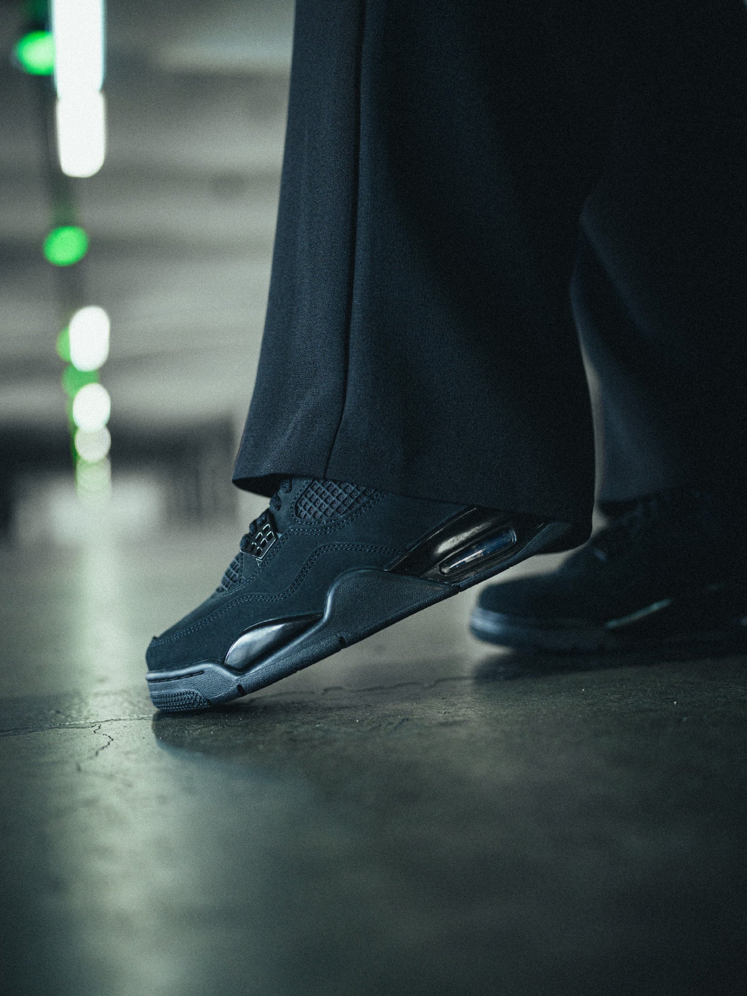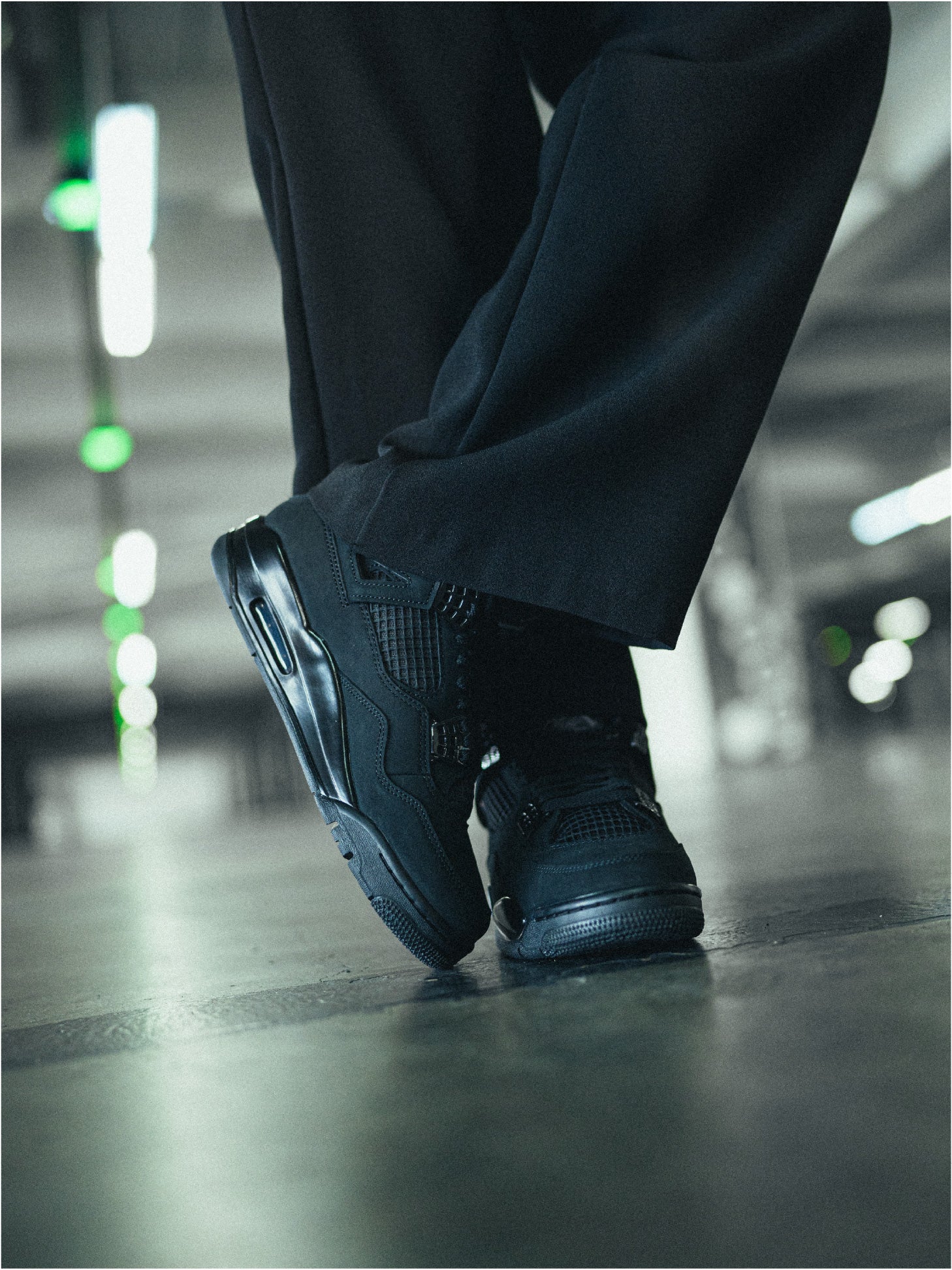 Los AJ4 reinterpretan ese espíritu desde su arquitectura: líneas definidas, estructura firme, una construcción que equilibra soporte y fluidez. Su retorno se siente como un reconocimiento al pasado, pero también como una actualización sutil que respeta su esencia original. En esta edición, el negro no es un tono: es un enfoque.