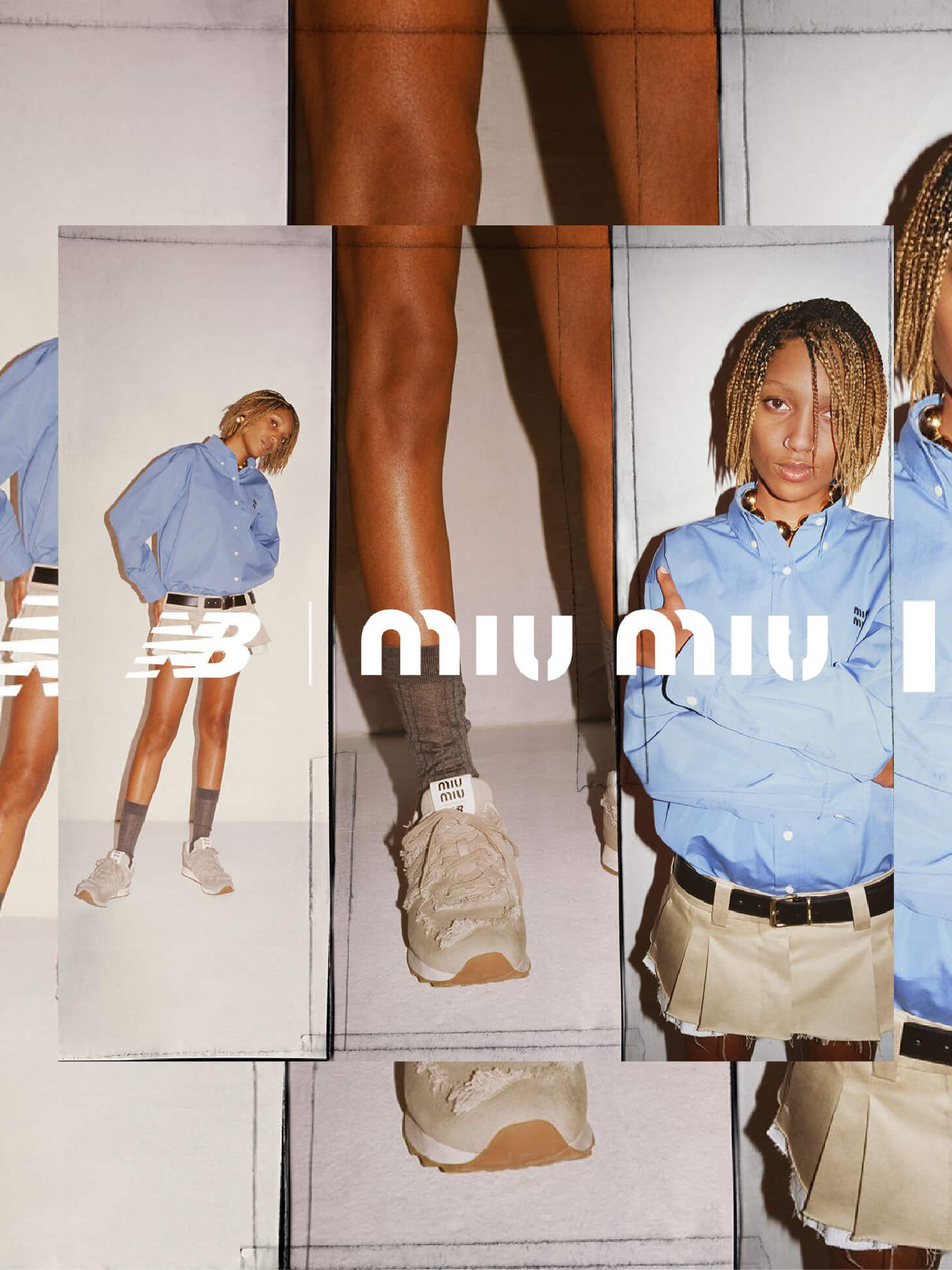 .Miu Miu ((@miumiu): Esta colaboración ha sido uno de los crossovers más emocionantes en el mundo de la moda, fusionando el icónico modelo 574 con la sofisticación de la alta costura.