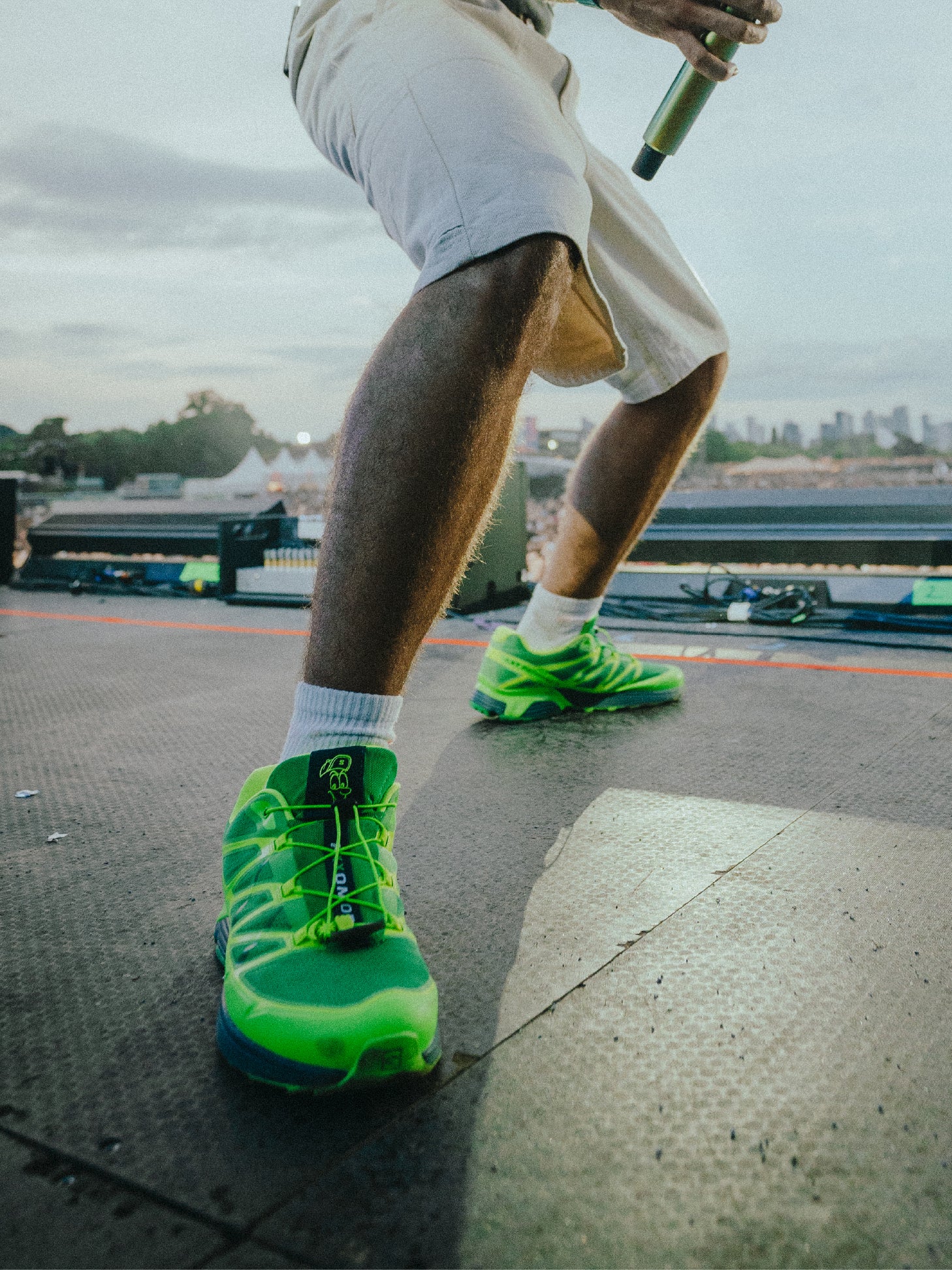 “Rompimos esquemas al añadir dijes personalizados, algo nunca antes visto en un calzado de Salomon. Es una pieza única, como la energía que quiero transmitir en todo lo que hago.”