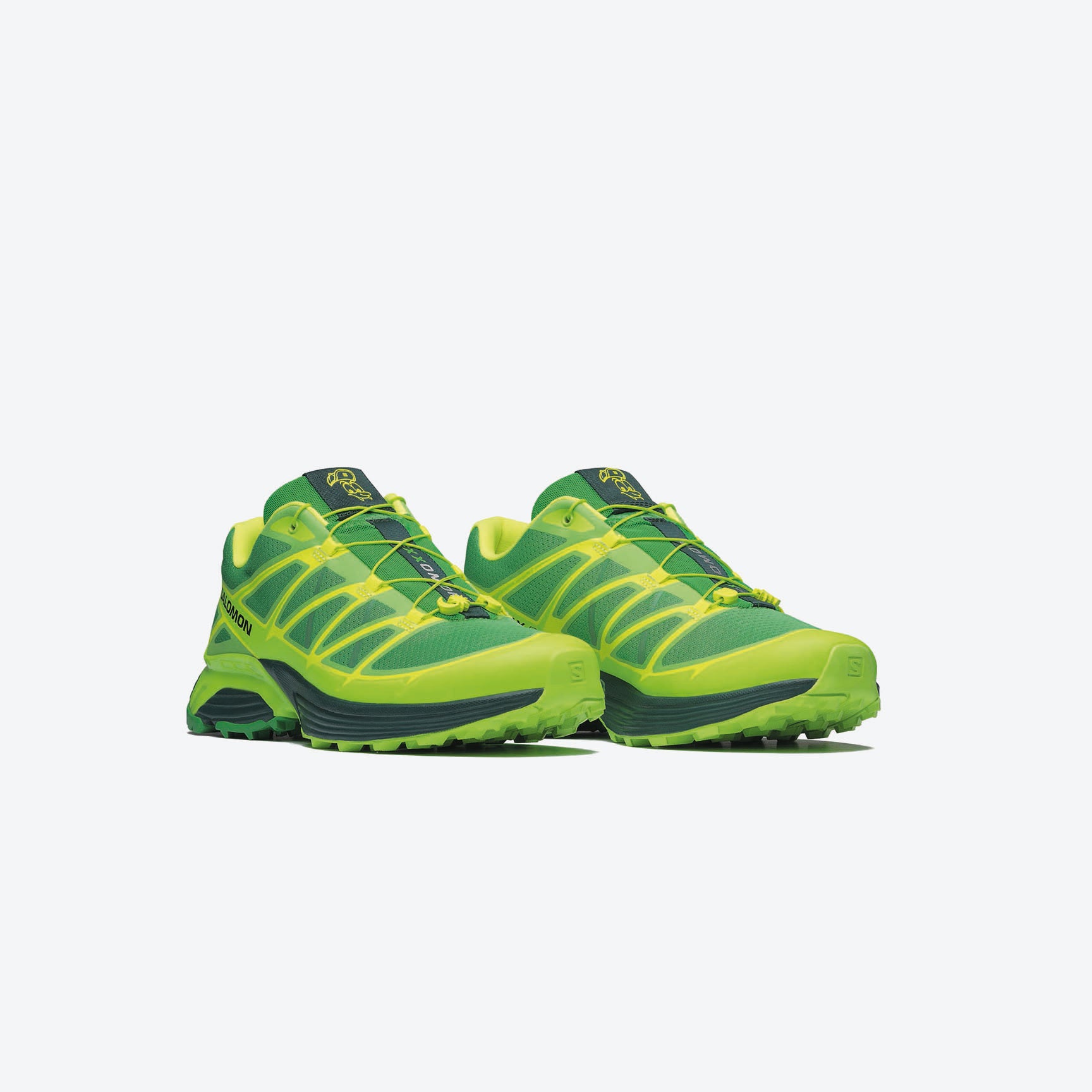 El XT-Pathway 2 FERXXO reinterpreta el rendimiento outdoor desde una mirada creativa y emocional. Inspirado en los paisajes y la energía de Medellín, el par fusiona la ingeniería alpina de Salomon con el lenguaje visual de Feid, marcado por el color verde —símbolo de raíz, esperanza y energía—.