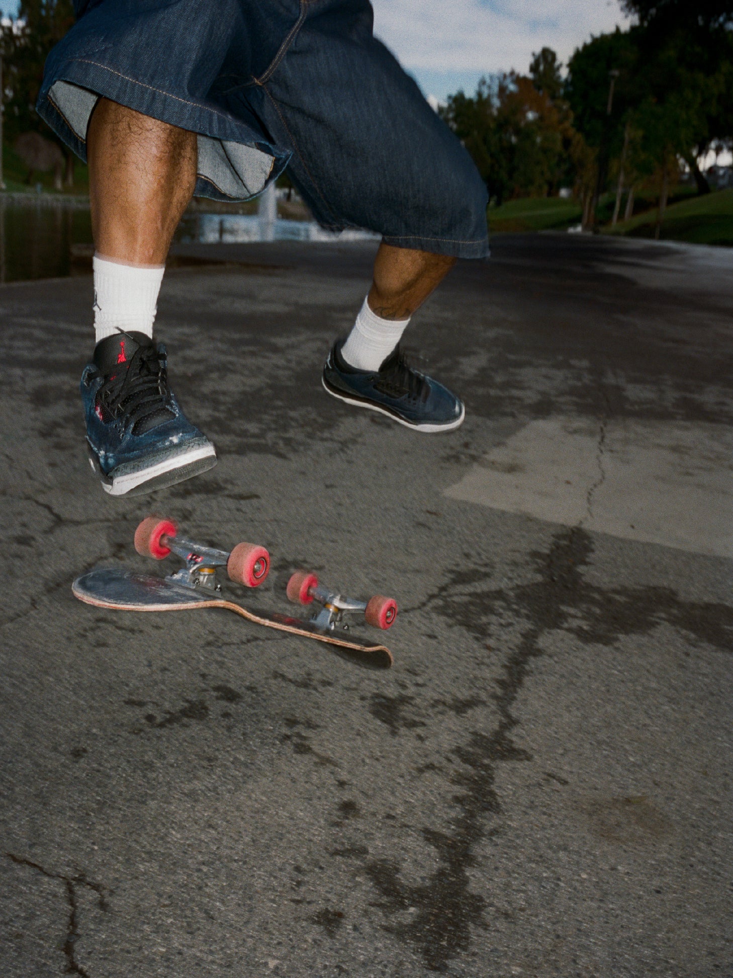 La relación entre Jordan Brand y Levi’s no surge desde la moda coyuntural ni desde la repetición constante. Inicia formalmente en 2018, cuando ambas marcas presentan su primera colaboración sobre la Air Jordan 4, acompañada por una cápsula de denim intervenido. Desde ese momento quedó claro que no se trataba de aplicar un material “de moda”, sino de permitir que el denim envejeciera, se desgastara y contara su propia historia.