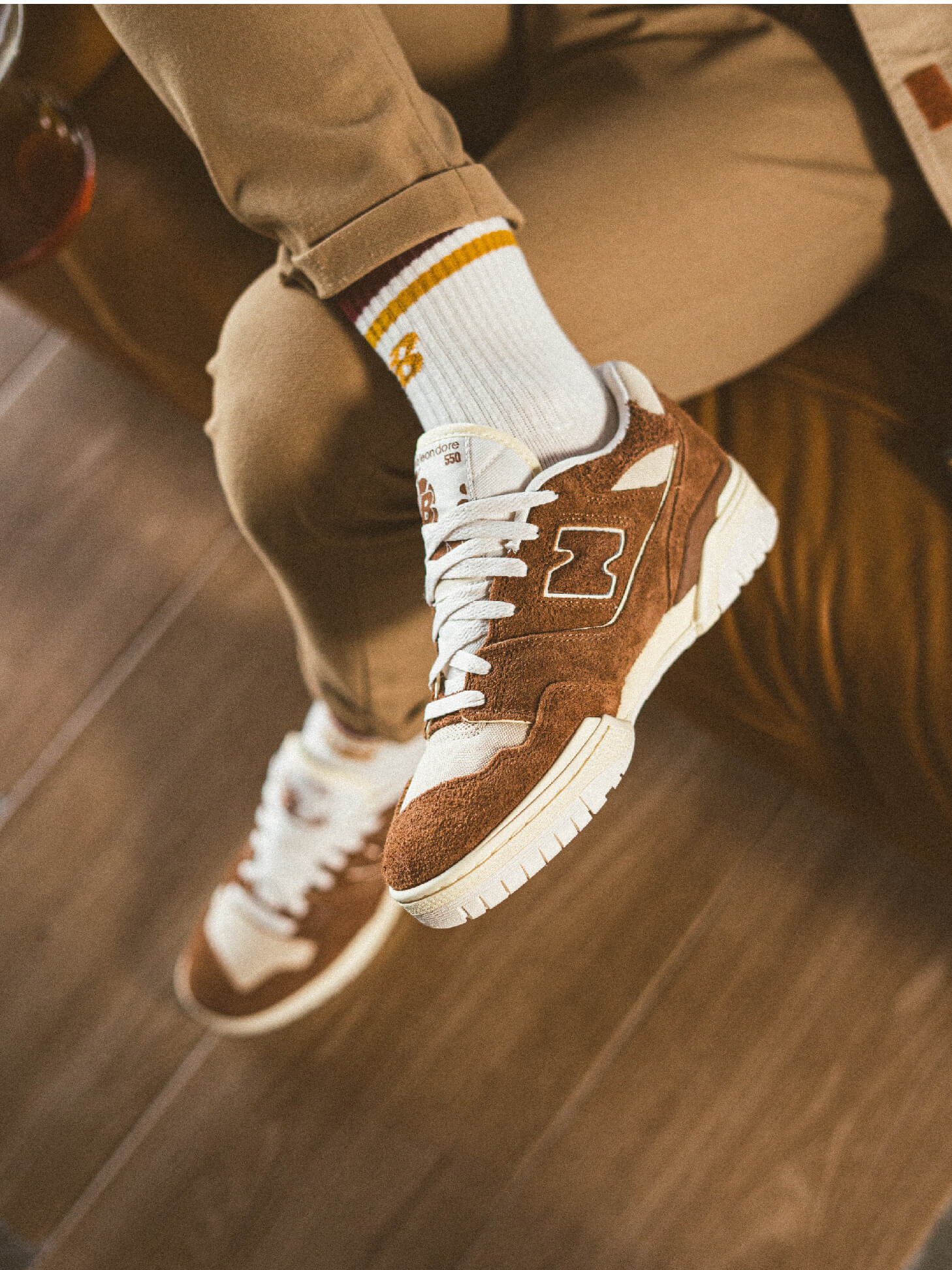 Para esta ocasión nos presenta dos referencias: New Balance 550 y 650R en diferentes colores. El New Balance 550 x ALD Brown combina a la perfección materiales y detalles nostálgicos en una silueta atemporal, ideal para looks streetwear y fashion. El sneaker presenta una base de lona y entresuelas blancas en colores Brown y Warm.