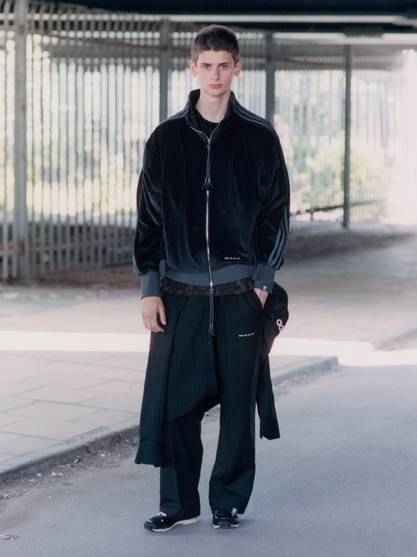 Bajo la dirección creativa de Stephen Mann y la lente de Maxwell Tomlinson, la campaña captura esa tensión entre movimiento y pausa. Los escenarios —bordes de concreto, tierra blanda, pasos elevados— se convierten en metáforas visuales de la colección: espacios liminales donde nada está completamente fijo. Las prendas flotan, los gestos se retienen, y la quietud se vuelve parte del discurso.