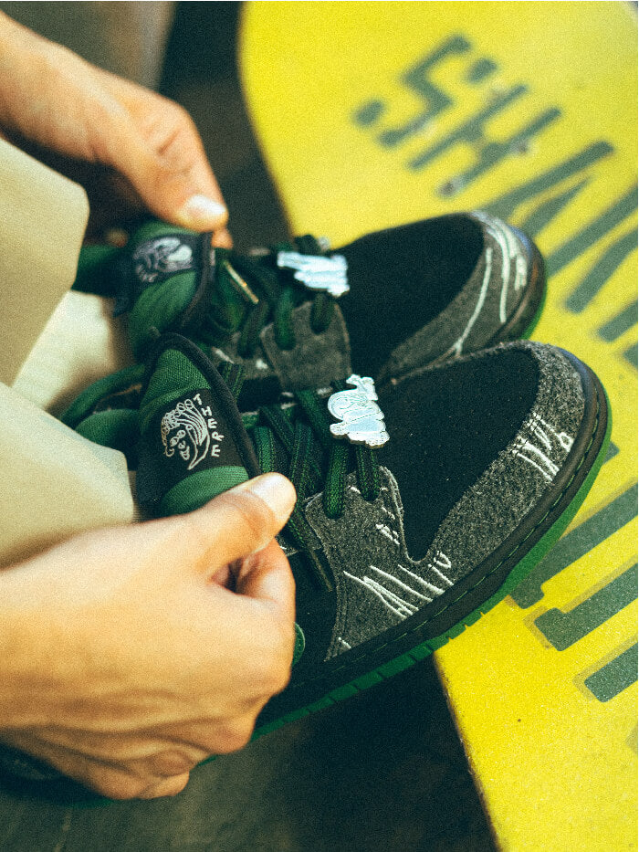 Un diseño ecléctico y artesanal caracteriza esta colaboración, con ilustraciones que capturan el estilo crudo y hecho a mano de Cheung. Cada elemento de las zapatillas cuenta una historia de creatividad y resistencia, redefiniendo el estilo y rendimiento del skateboarding.