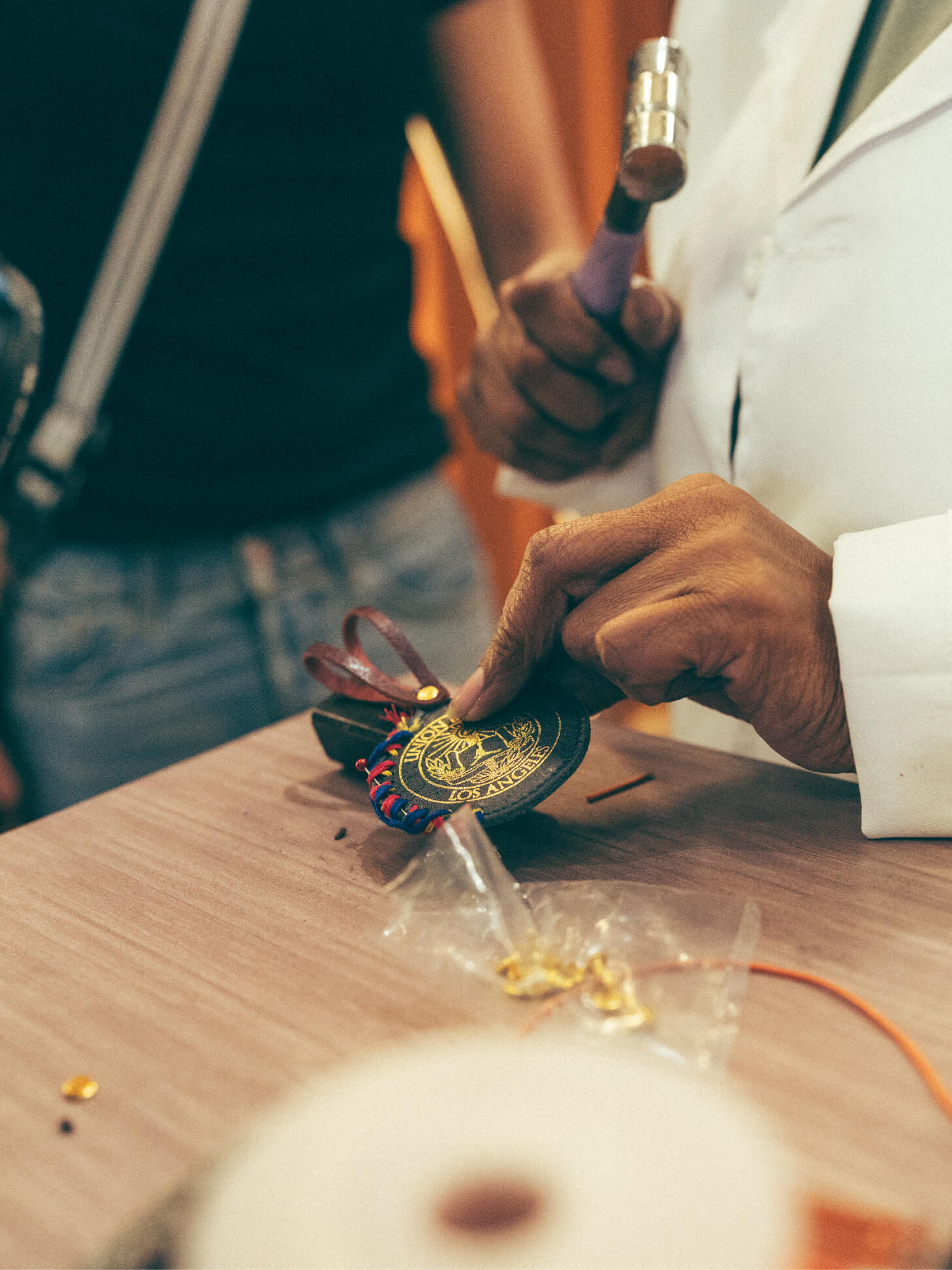 El workshop fue concebido como una experiencia de marroquinería inspirada en el universo de Union: materiales que permiten trabajar el desgaste, acabados que evocan lo vintage e intervenciones que celebran el paso del tiempo como valor estético. El cuero se convirtió en superficie narrativa. La costura visible dejó de ser detalle para transformarse en declaración.