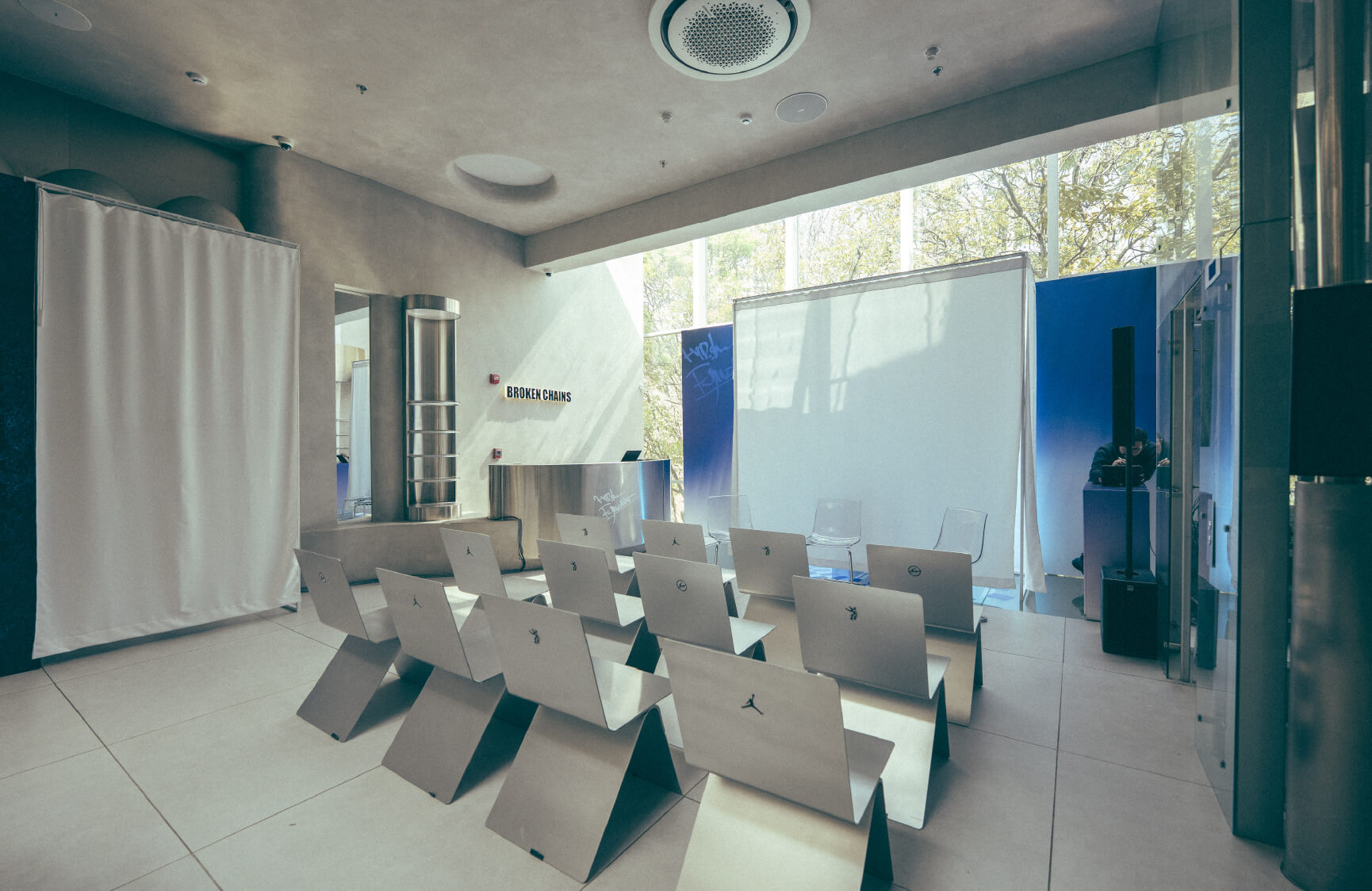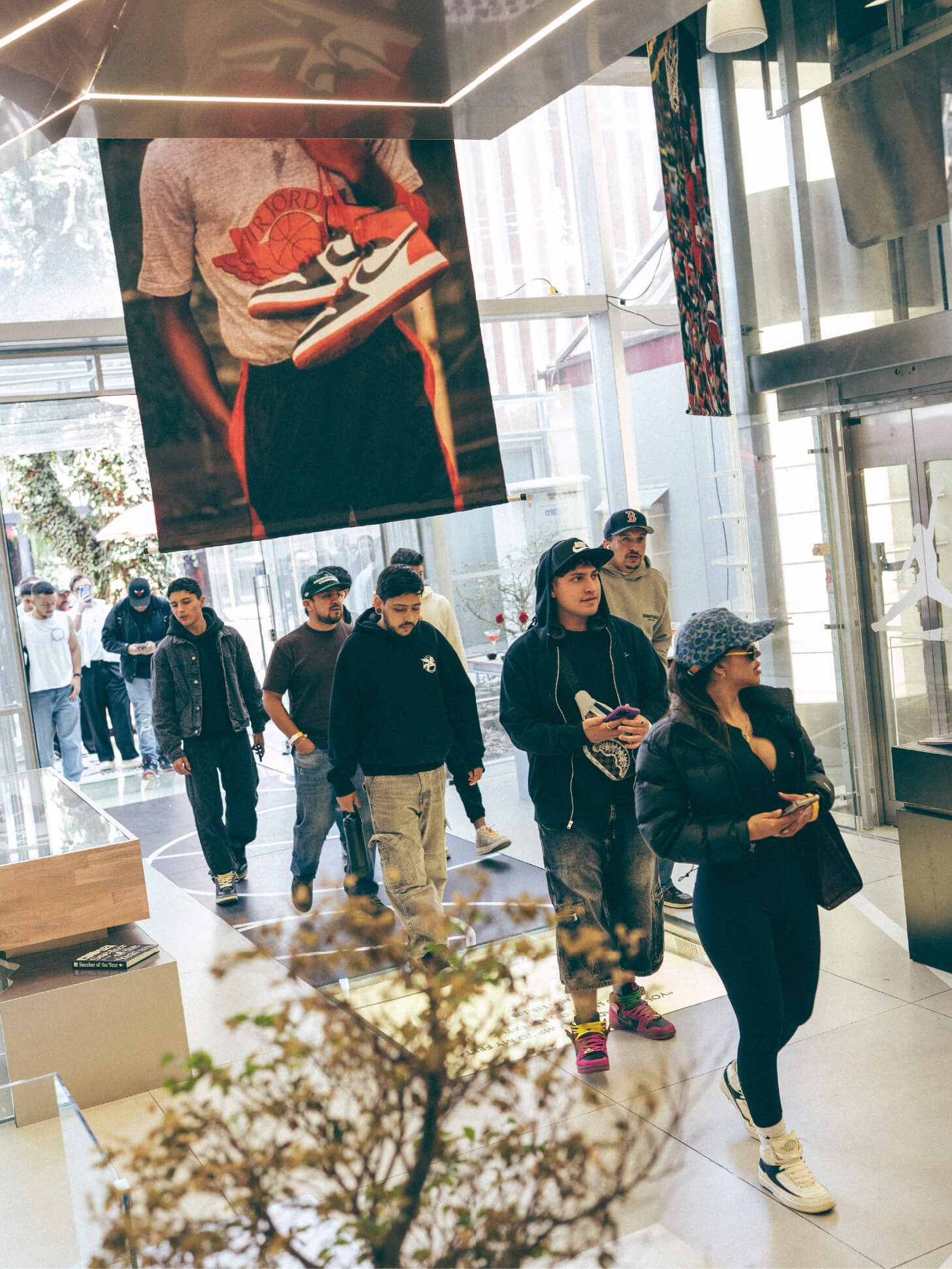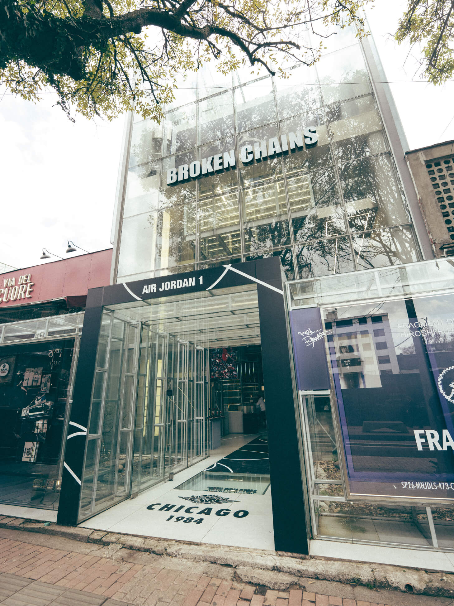 Broken Chains fue intervenido en sus tres pisos para narrar el ADN de cada ciudad. Cada nivel proponía una energía distinta, conectando basketball, streetwear y cultura sneaker desde una lectura sensorial más que cronológica.