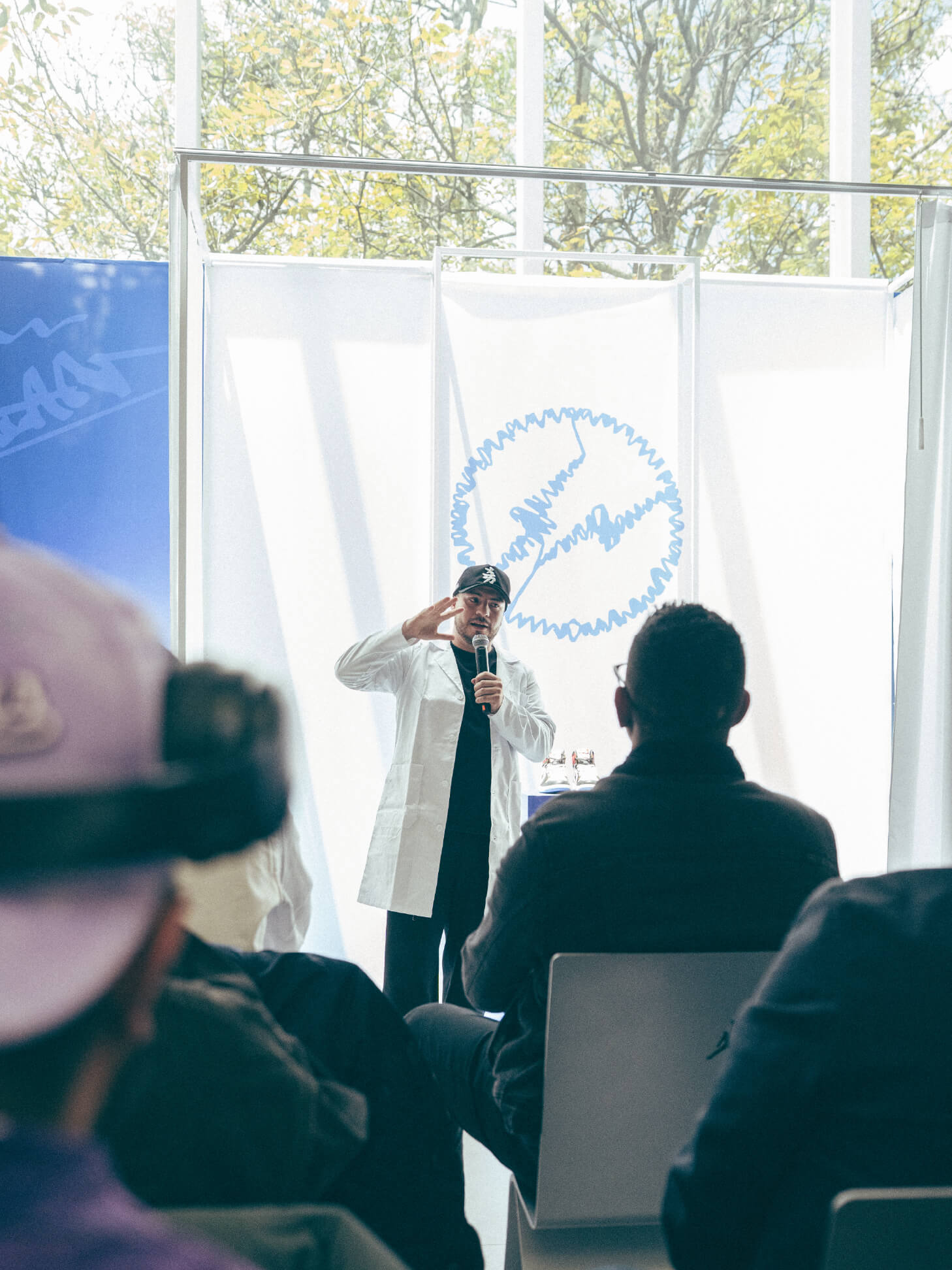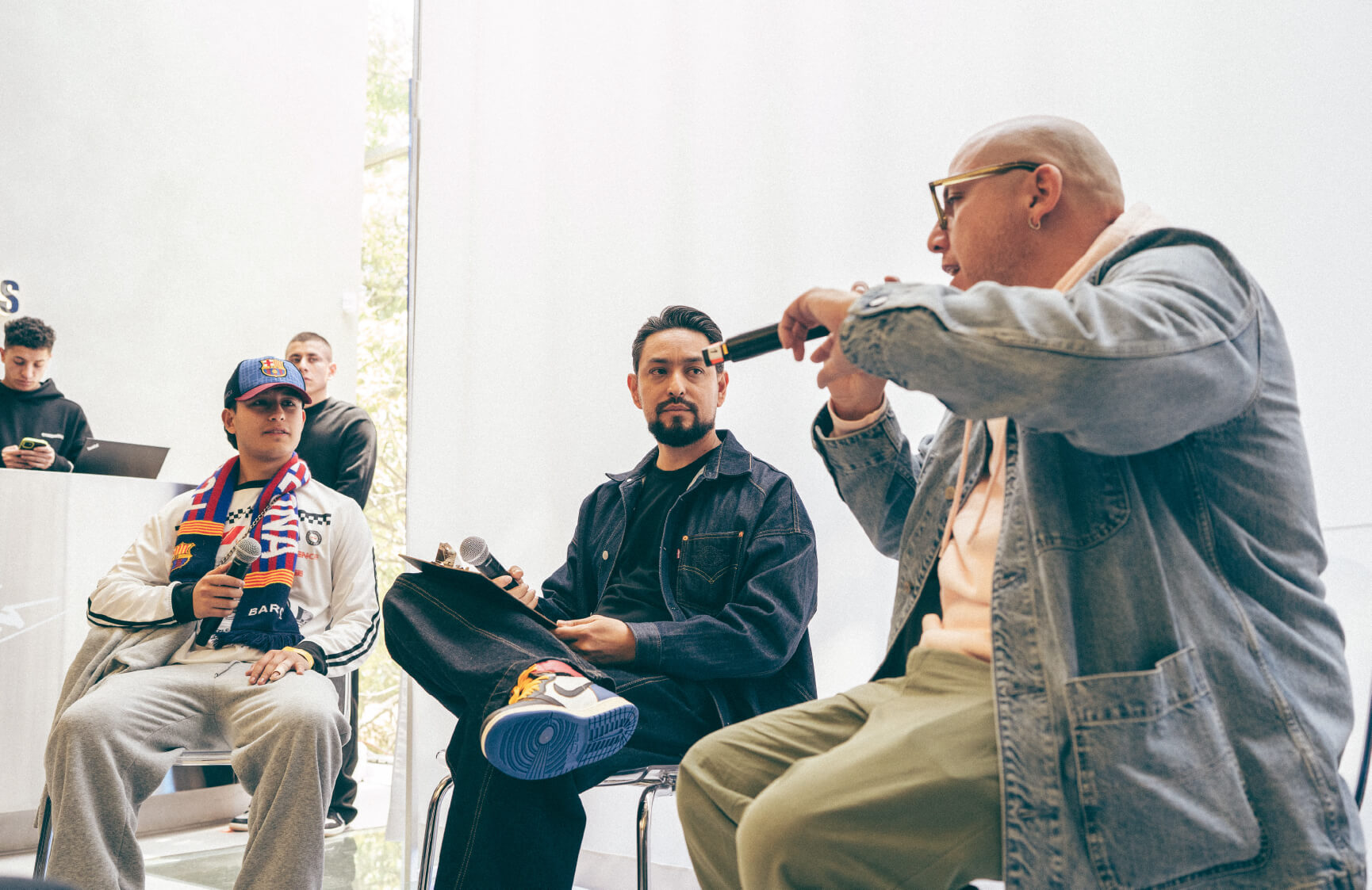 La conversación abordó al Jordan 1 como el origen del sneaker culture moderno, explorando la memoria como herramienta de diseño, la precisión como lenguaje cultural y la convergencia de estas visiones en un mismo objeto. Como parte del diálogo, se abrió un espacio para la comunidad, invitando a un joven representante de la nueva generación de sneakerheads a compartir su perspectiva, reforzando la importancia de la transmisión cultural entre generaciones.