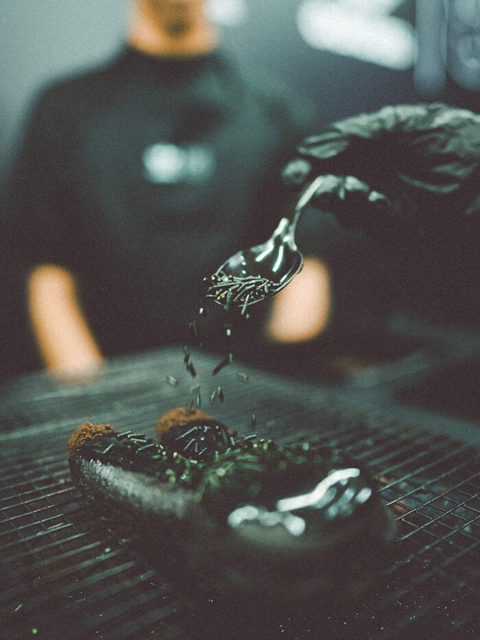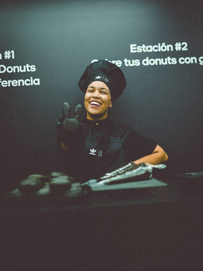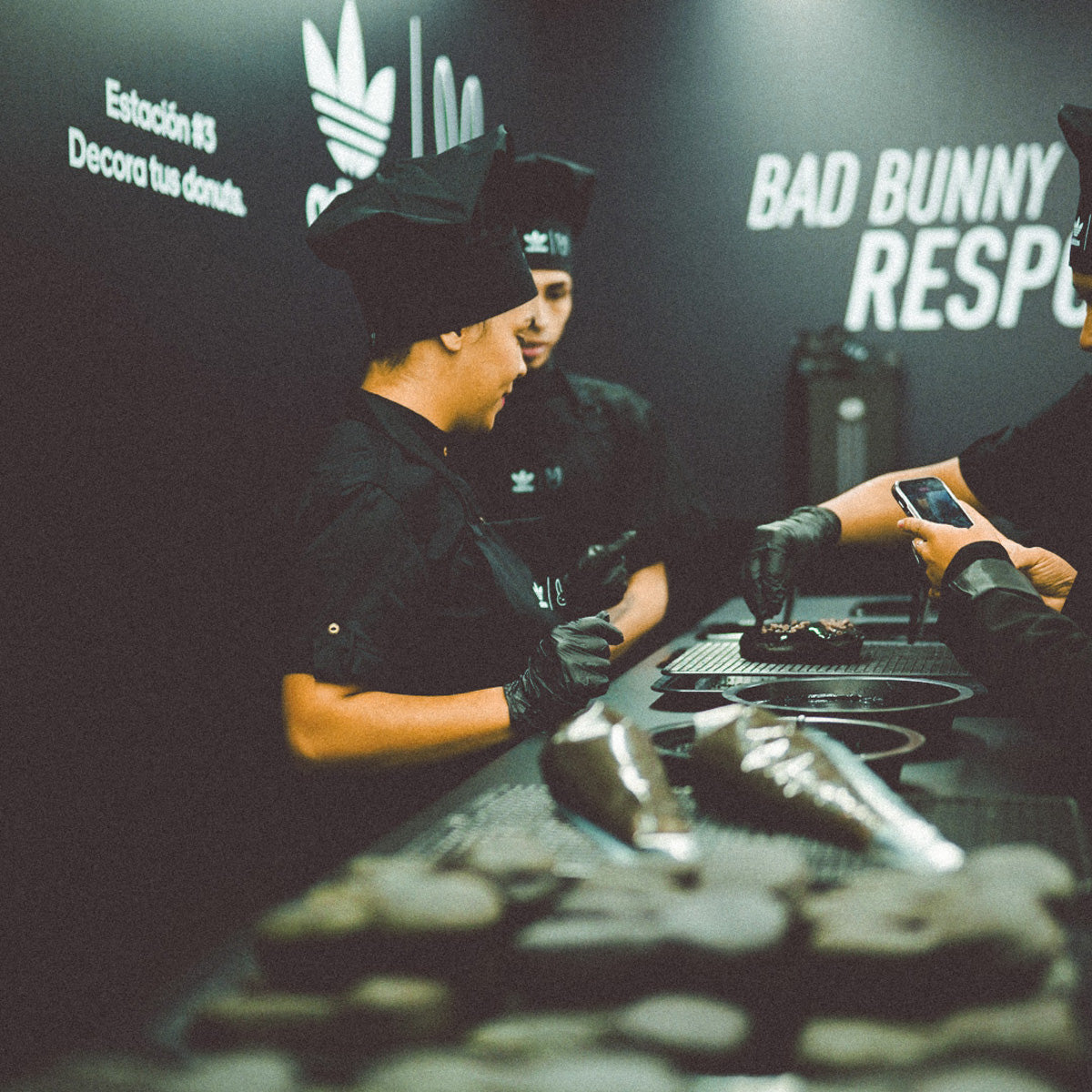 El premio consistía en la creación de las Bad Bunny Black Donuts que cada uno realizaría en conjunto con la talentosa @Valentina Bakery, donde el color NEGRO era el punto de partida para disfrutar de una estación totalmente personalizada llena de creatividad y sabor.