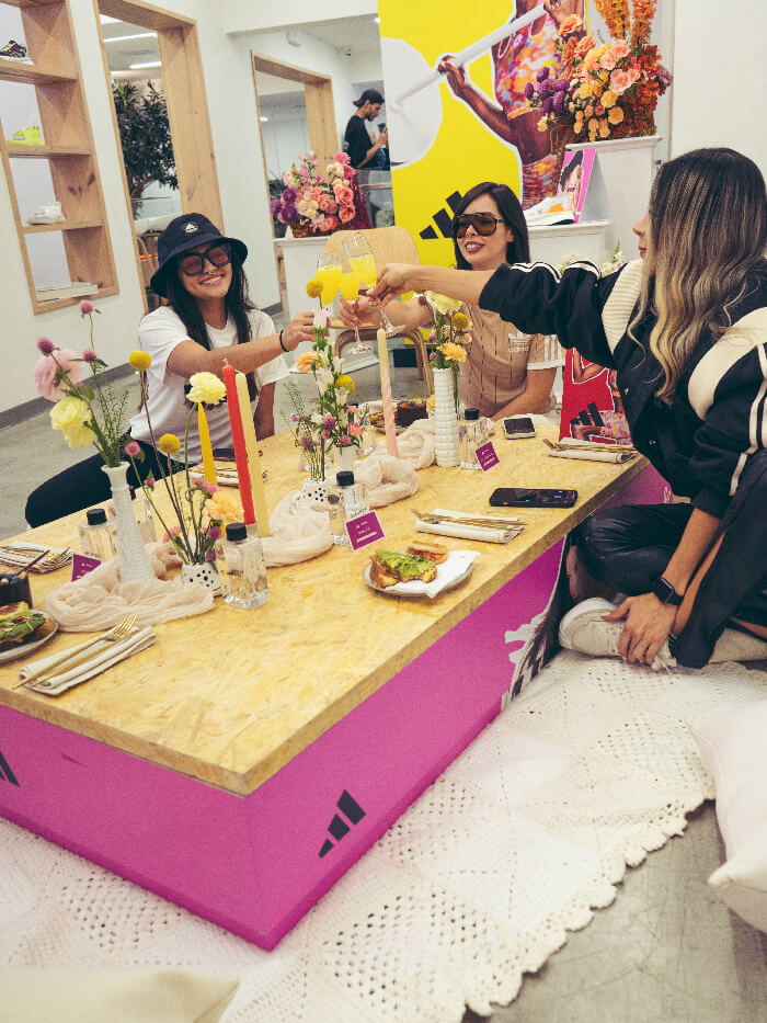 El día comenzó en Olam Pilates Studio a la 1:00 pm, un espacio que hacía perfecta alusión al contexto del concepto de esta nueva colaboración. Allí, las invitadas fueron recibidas por parte del brand manager de adidas y el equipo de Broken Chains, quienes les entregaron un kit que no solo contenía productos esenciales para la jornada, sino pequeños detalles diseñados para inspirar como una tote bag personalizada de Broken Chains.