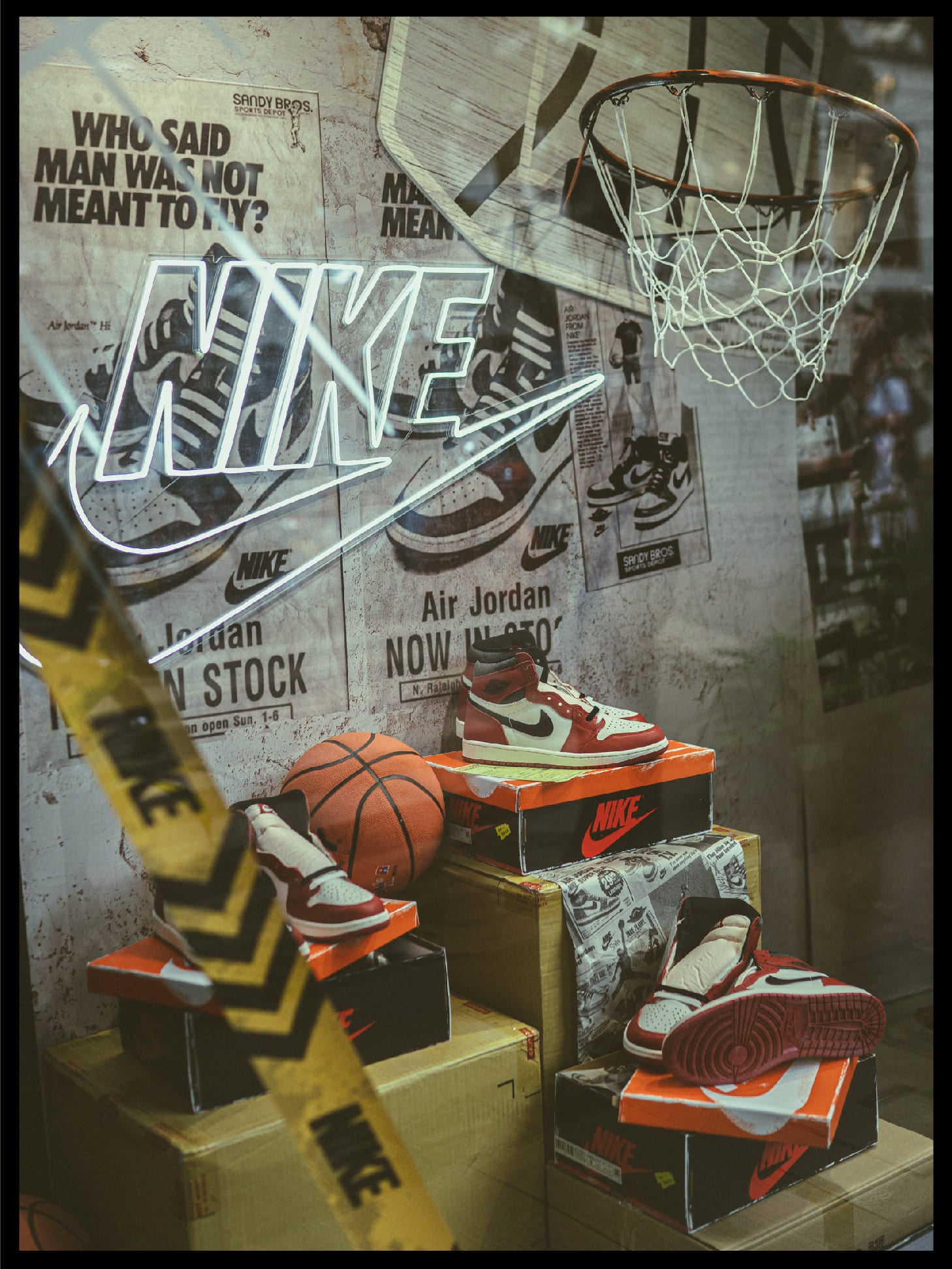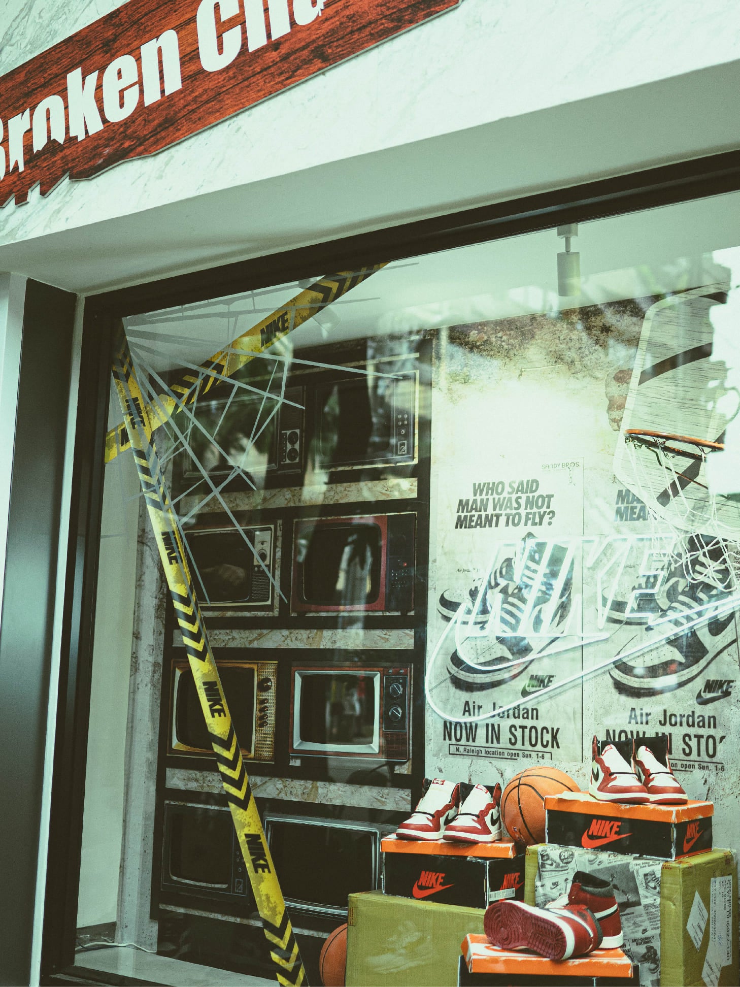 Este icónico calzado, inspirado en la paleta de colores original del Air Jordan 1 lanzado por primera vez en 1985, nos transporta a una época en la que las cajas de zapatos a menudo se extraviaban en los almacenes de inventario, solo para ser redescubiertas años después. Estableciendo un vínculo con la narrativa de una tienda abandonada, donde residía el tesoro más anhelado por todos los sneakerheads, decidimos crear una actividad única.