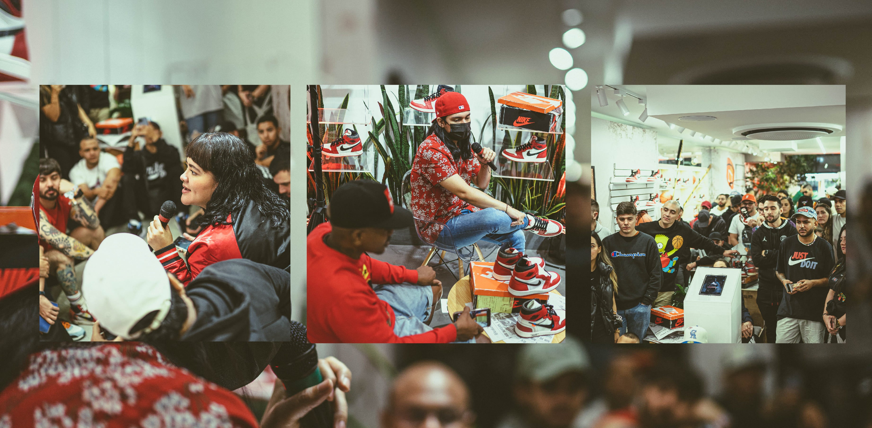 Con el propósito de elevar aún más esta vivencia, decidimos transformar nuestra tienda en Medellín en una tienda de reliquia, evocando la estética de una tienda abandonada en el año 1985. Ademas, tuvimos el honor de contar con la presencia de @Sonni3ds, un coleccionista de sneakers de nuestra comunidad en Colombia. Lideró un conversatorio que exploró en profundidad la importancia del Jordan 1 Chicago en el fascinante mundo de los sneakers.