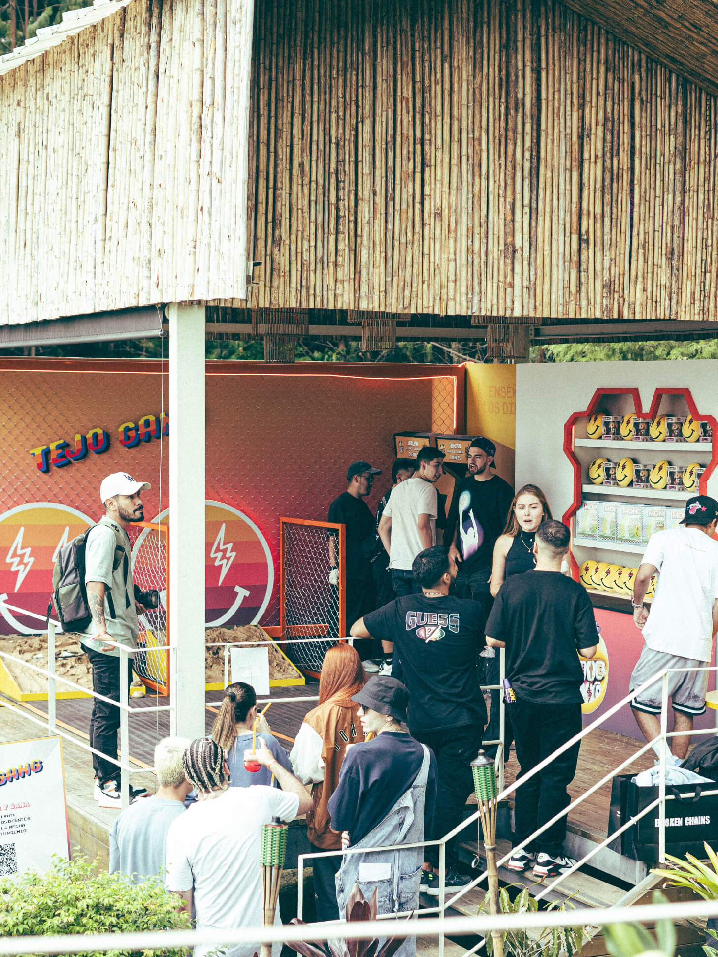 La diversión de esta experiencia estuvo a cargo del deporte autóctono colombiano que se ha practicado desde hace más de 500 años: EL TEJO. Un espacio donde cada persona pudo disfrutar de un momento lleno de risas y adrenalina por la competencia donde podían recibir regalos por parte de J Balvin Merch.