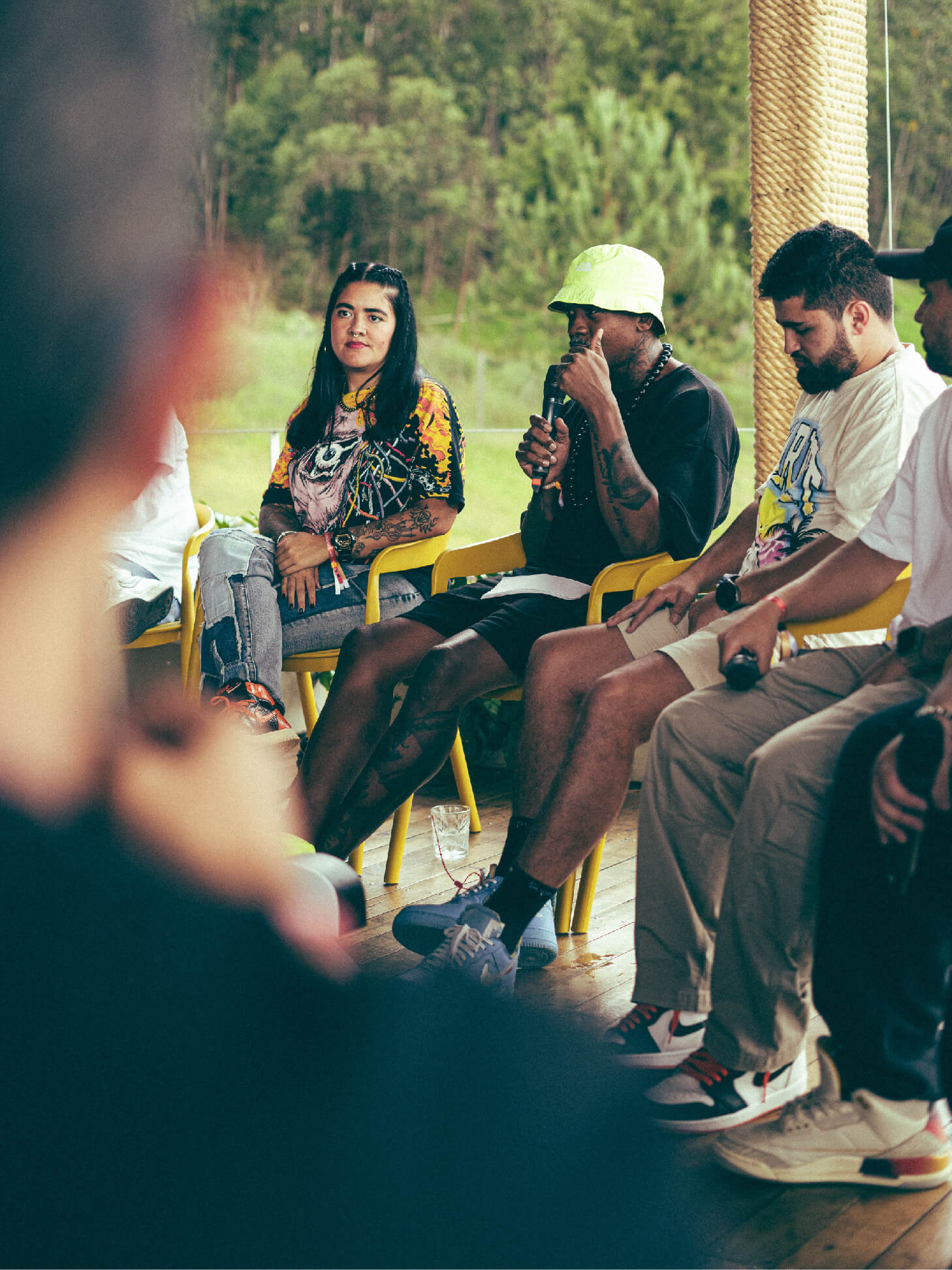 El atardecer comienza a aparecer y con él, el segundo momento más esperado por los asistentes… LOS CONVERSATORIOS. Un espacio pensado en el intercambio cultural que ha sido una base fundamental en el conocimiento original para nuestro aporte al avance y desarrollo del Sneaker culture colombiano y latino.