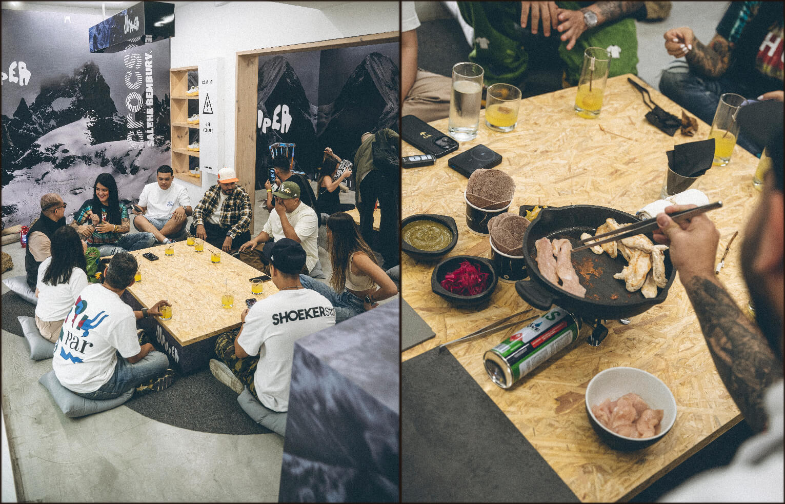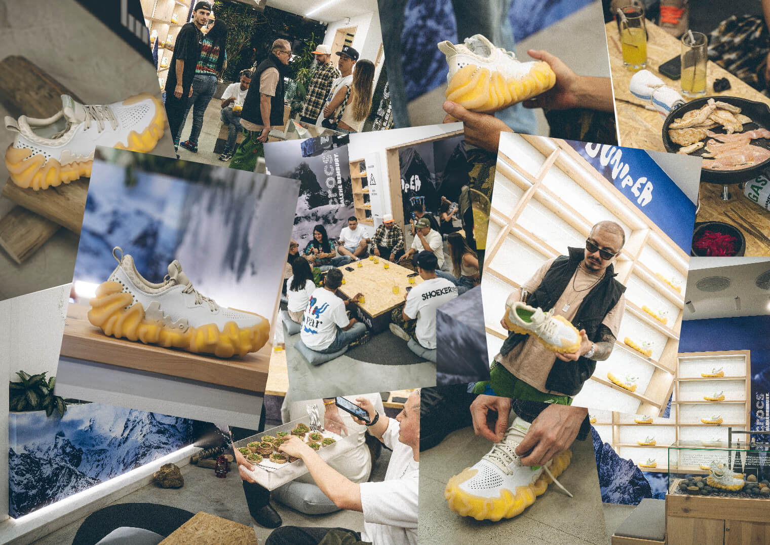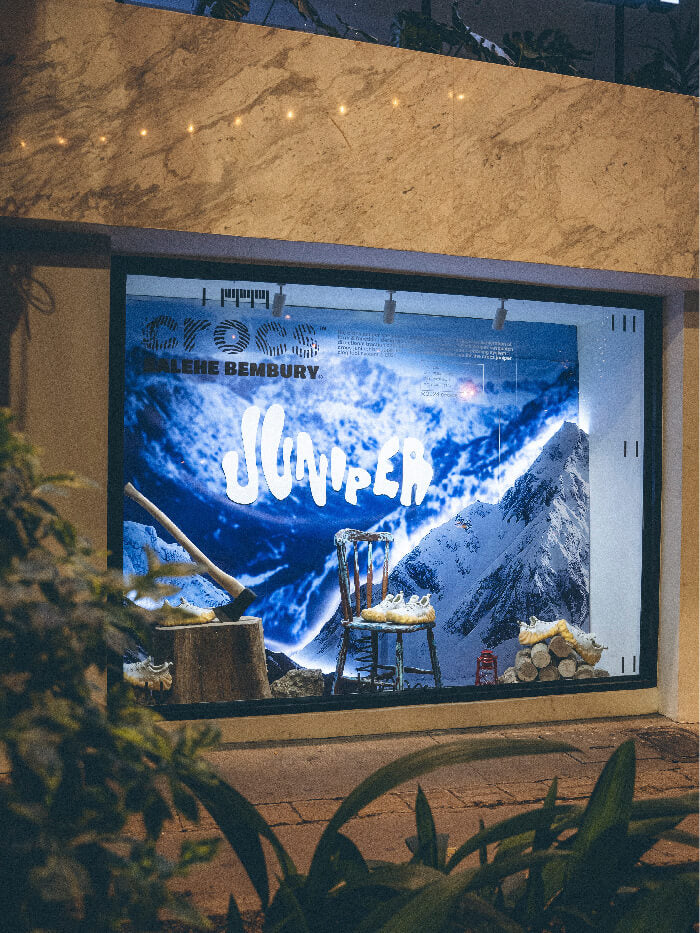 La tienda estaba transformada en un entorno natural, con vitrinas y paredes que creaban montañas en 3D. El manager de la tienda dio la bienvenida y presentó el concepto de la colaboración y allí los invitados disfrutaron de una noche de networking y conexión.