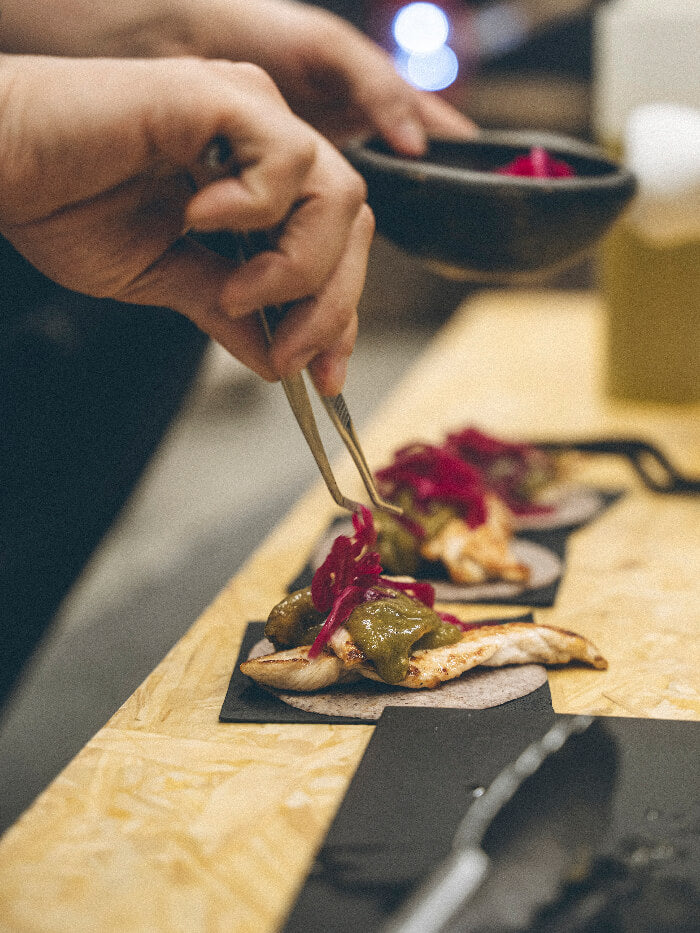La presentación de cada plato fue cuidadosamente diseñada para reflejar la esencia de la colaboración de Crocs™junto a Salehe Juniper quien es conocido por sus colaboraciones innovadoras y que transmitieron la esencia y visión única a esta experiencia.