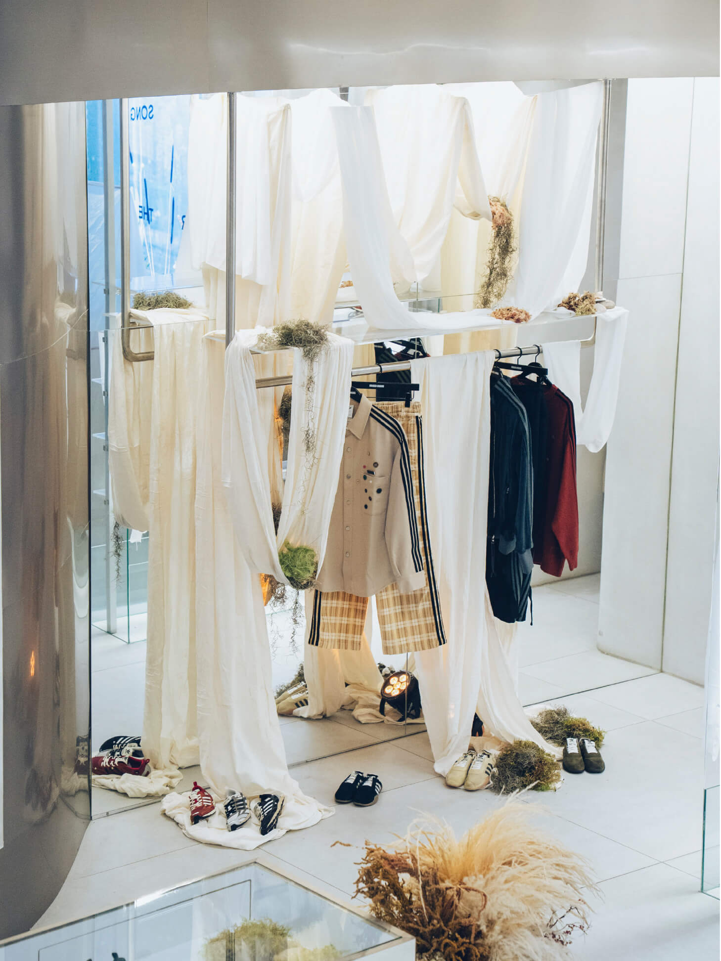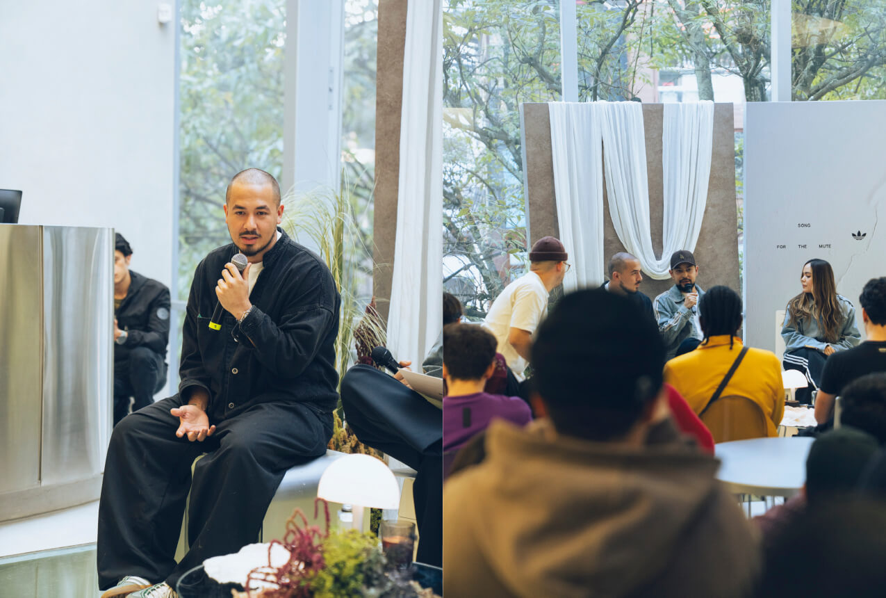 Al cierre del conversatorio, los asistentes descendieron al segundo piso, donde la exhibición de la colección Song for the Mute x adidas 006 tomó vida entre texturas, materiales y silencios visuales. Cada prenda narraba una historia; cada detalle invitaba a una pausa.
