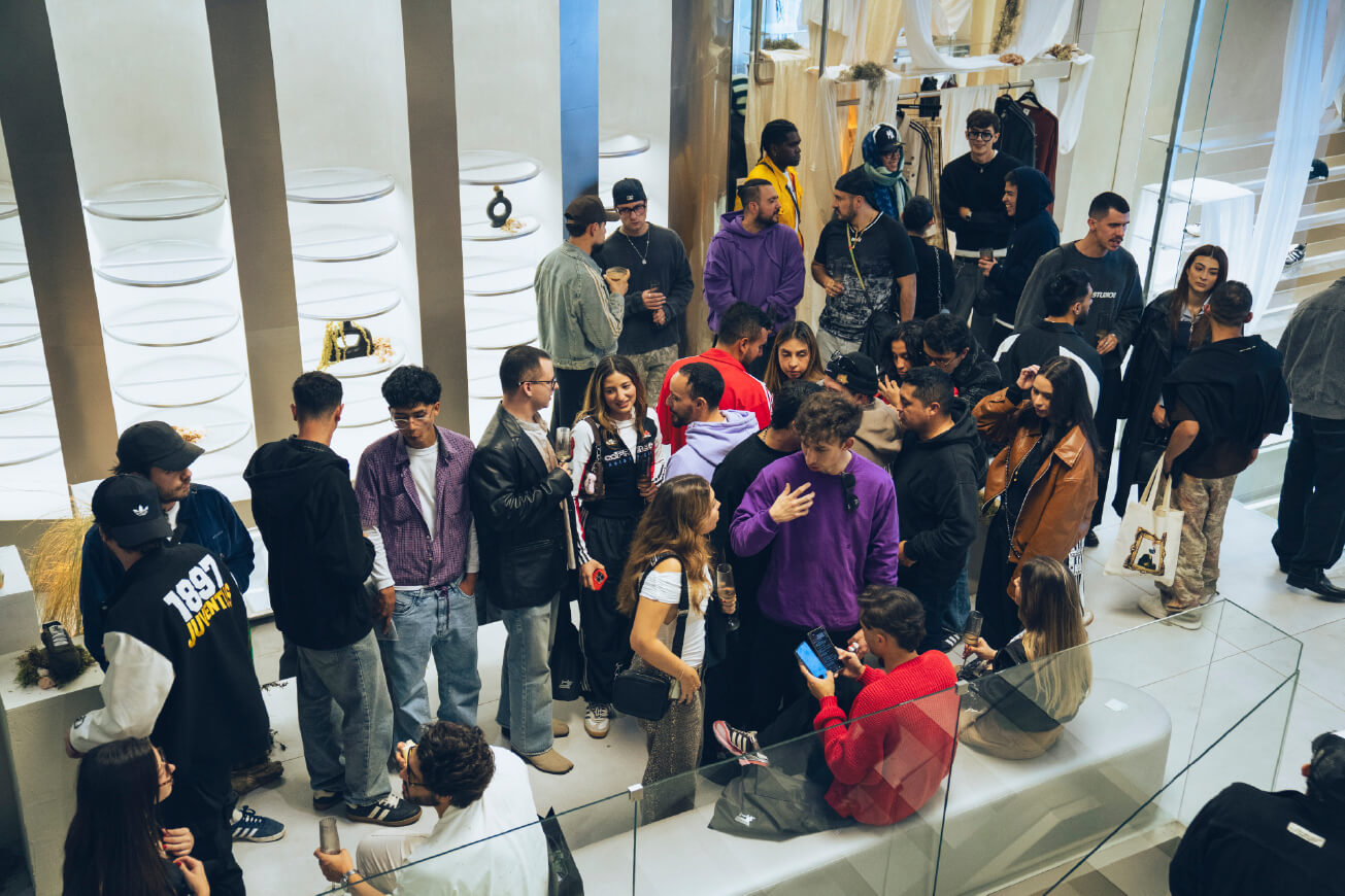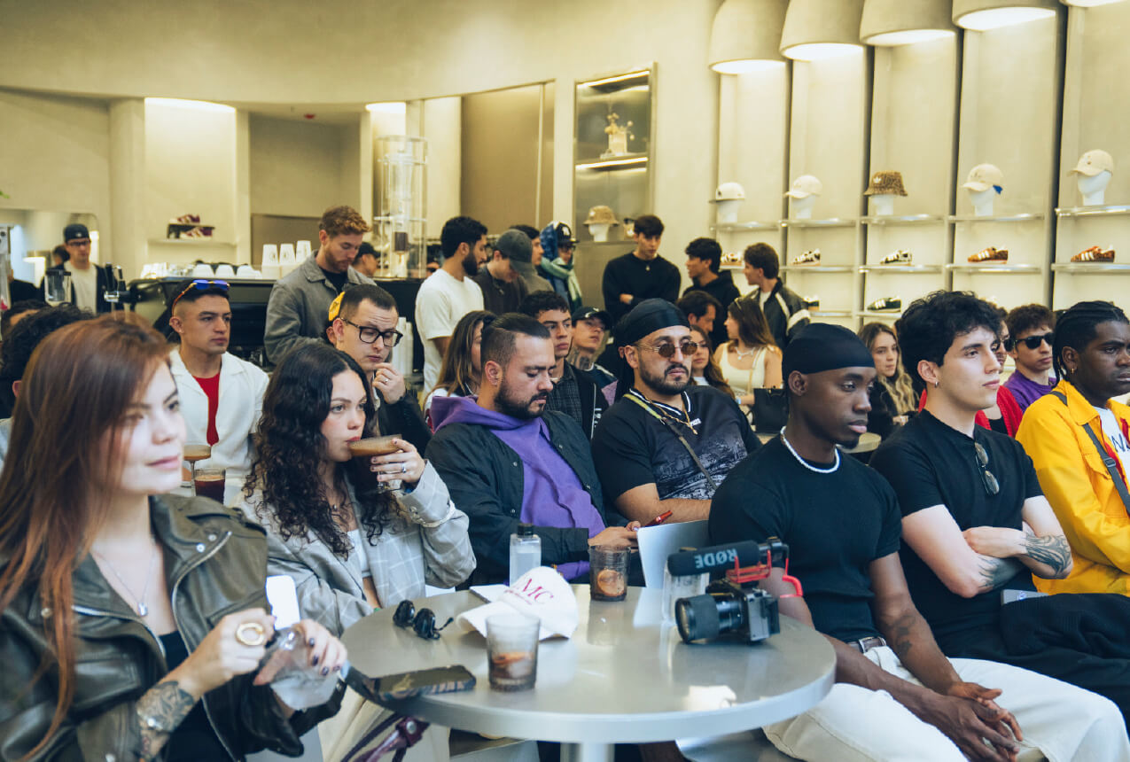 Desde las 4:00 p.m., el tercer piso de la flagship store recibió a los invitados para un conversatorio íntimo liderado por Juan David Jaramillo, junto a María Alejandra Mesa (Directora Creativa y Co-fundadora de Broken Chains), Jorge Alejandro (fundador de Old Maquiina) y Riago (creador digital).