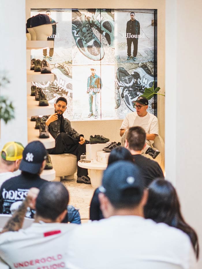 El epicentro de la tarde llegó en un conversatorio de nuestro CEO, Juan D. Ramírez, y el creador de contenido streetwear y sneakearhead OG, Al Athim sobre la relevancia que ha logrado tener New Balance en los últimos años y cómo se ha convertido en un referente de moda simple, funcional y práctica. Un espacio de charla amena entre nuestros invitados y expertos donde hubo preguntas y comentarios de gran valor.