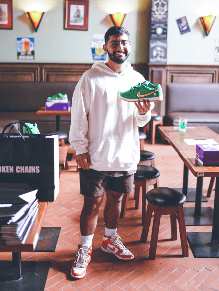Iniciando desde una perspectiva orientada a contribuir al desarrollo integral de la cultura Sneakerheads en nuestra nación y la región geográfica a la que pertenecemos, la línea SB de Nike desempeña un papel fundamental en la identidad de Broken Chains. La introducción de esta línea en nuestra compañía, con el lanzamiento de las Dunk Low SB St Patrick Day, marcó el inicio de una conexión significativa con la comunidad Skater local. Esta activación, enraizada en el ADN SB y su inspiración en el St Patrick Day, se convirtió en un capítulo fundamental de nuestra historia compartida.