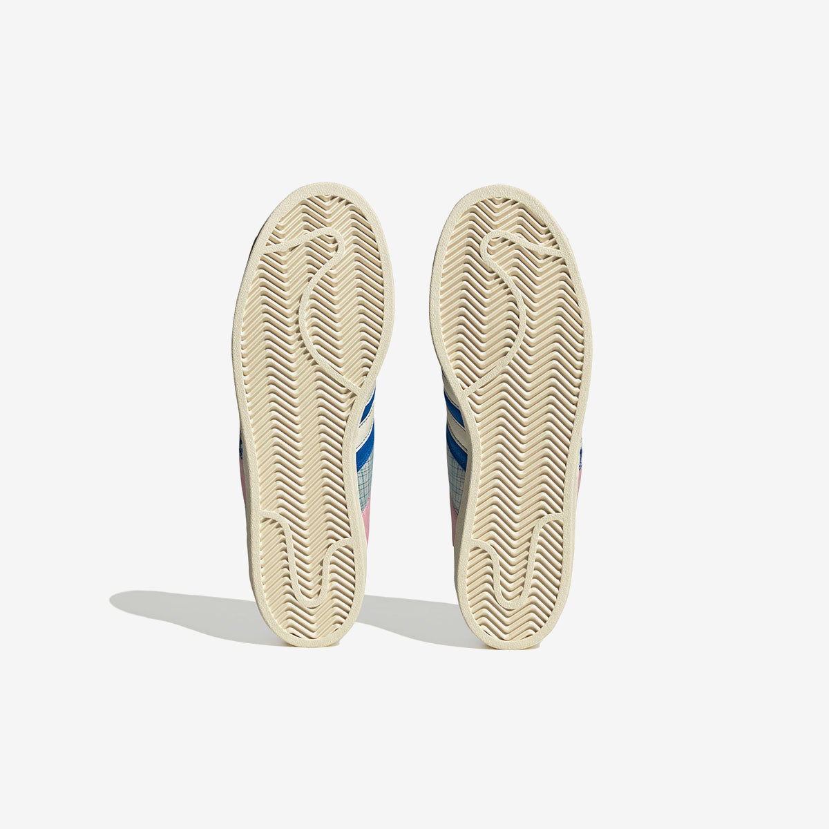 Las zapatillas Superstar Supermodified de adidas, muestran un estilo maximalista con su diseño superior parcheado hecho de tela a cuadros, colores vibrantes, cordones gigantes, lengüeta acolchada y puntera icónica.
