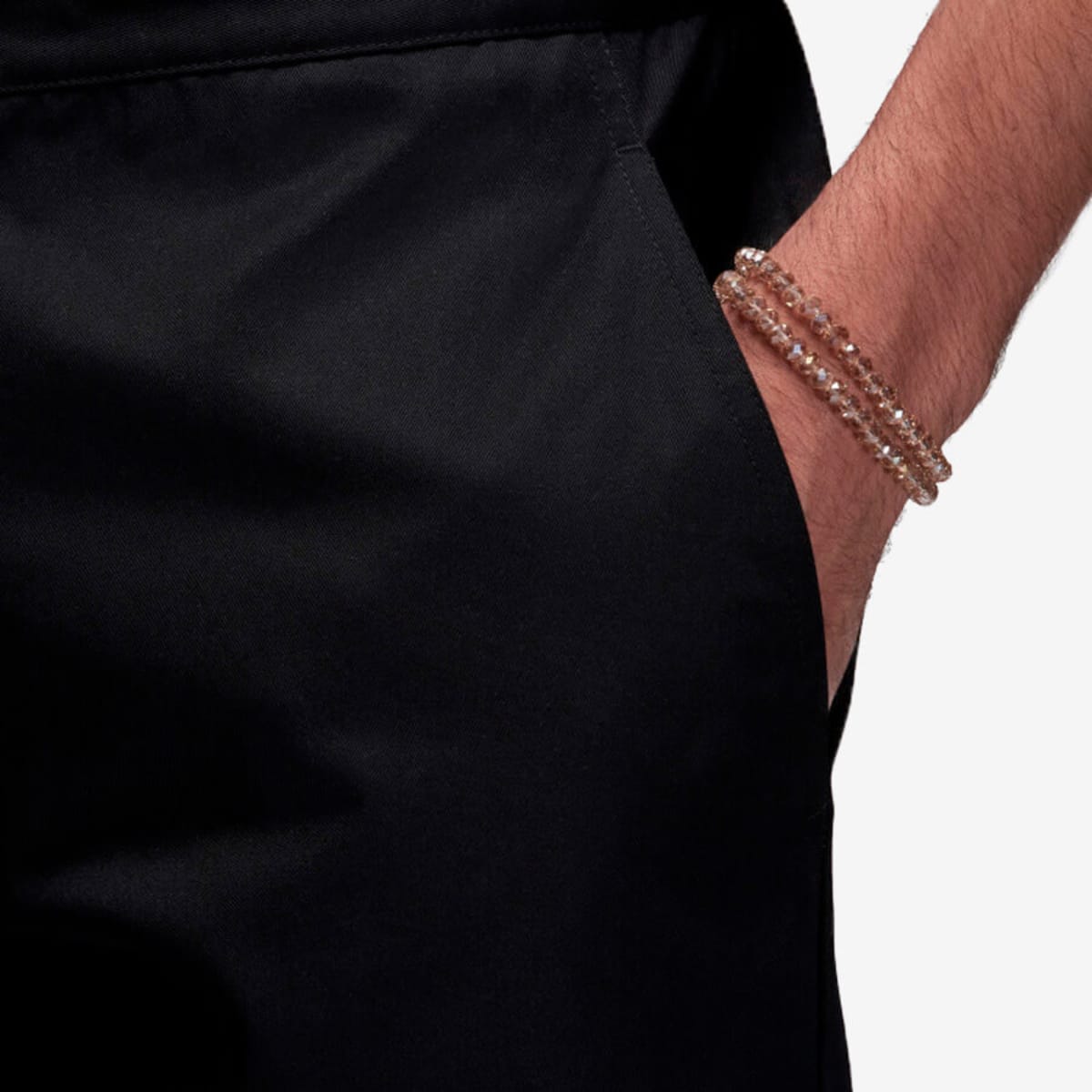 Confeccionados en sarga tejida de color negro, destacan por su ajuste amplio y cuadrado, formando parte integral de la colaboración J Balvin x Air Jordan. Su diseño audaz se distingue por detalles bordados que contrastan de manera llamativa, resaltando la estética única de la colección.