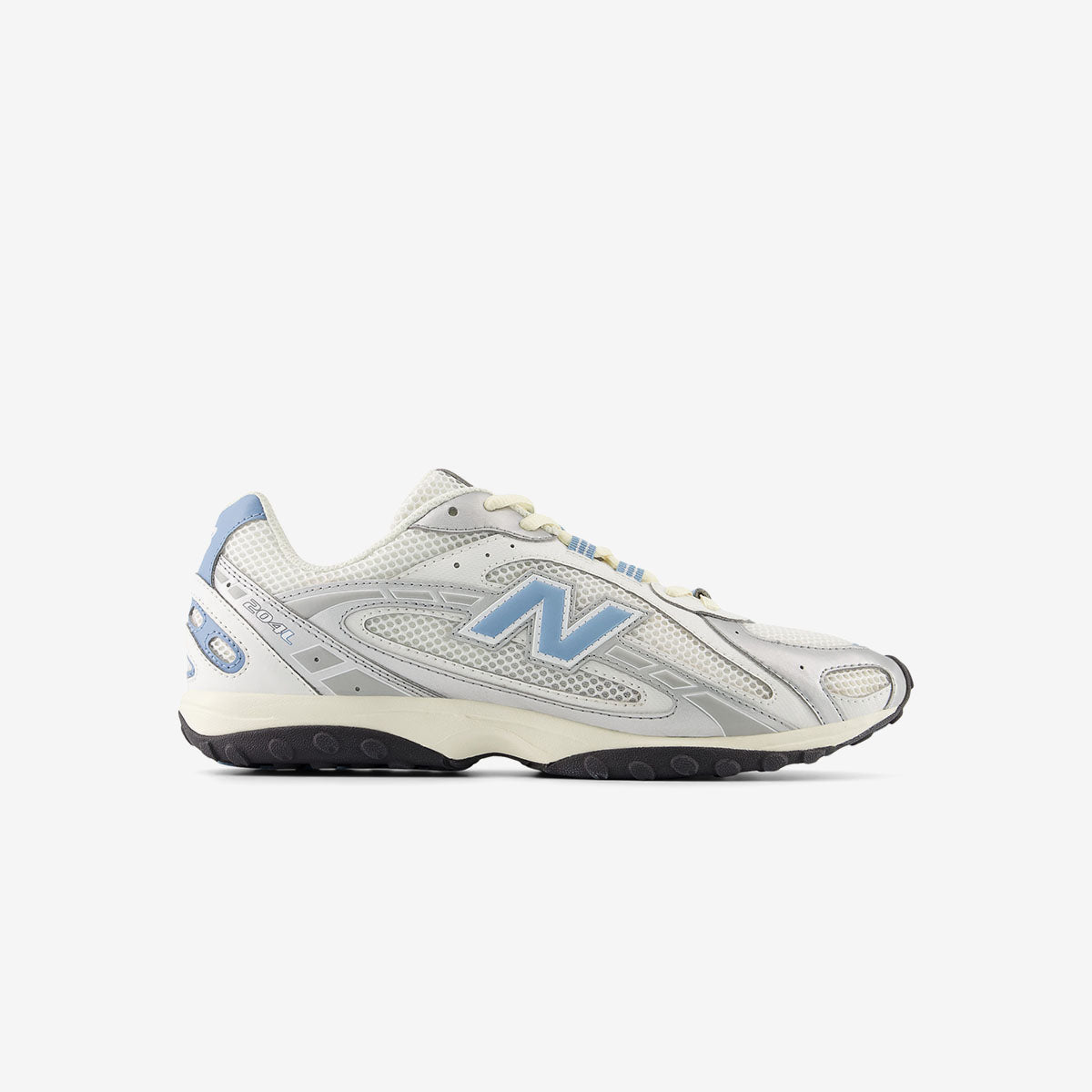 Revestida de plata, blanco y azul hielo, la zapatilla se sitúa en algún punto entre la tecnología de running de principios de los 2000 y el estilo urbano contemporáneo. La base de malla permite la transpiración, mientras que los refuerzos plateados aportan estabilidad. El azul hielo resalta en el distintivo logo 'N', la lengüeta del talón, los ojales y la suela, creando un sutil contraste que llama la atención de inmediato de los fanáticos de las zapatillas clásicas Y2K de New Balance. La mediasuela color crema y la resistente suela negra con tacos de tracción azules completan el diseño. Los detalles en el talón, la lengüeta y las plantillas refuerzan su rendimiento y consolidan su carácter urbano.