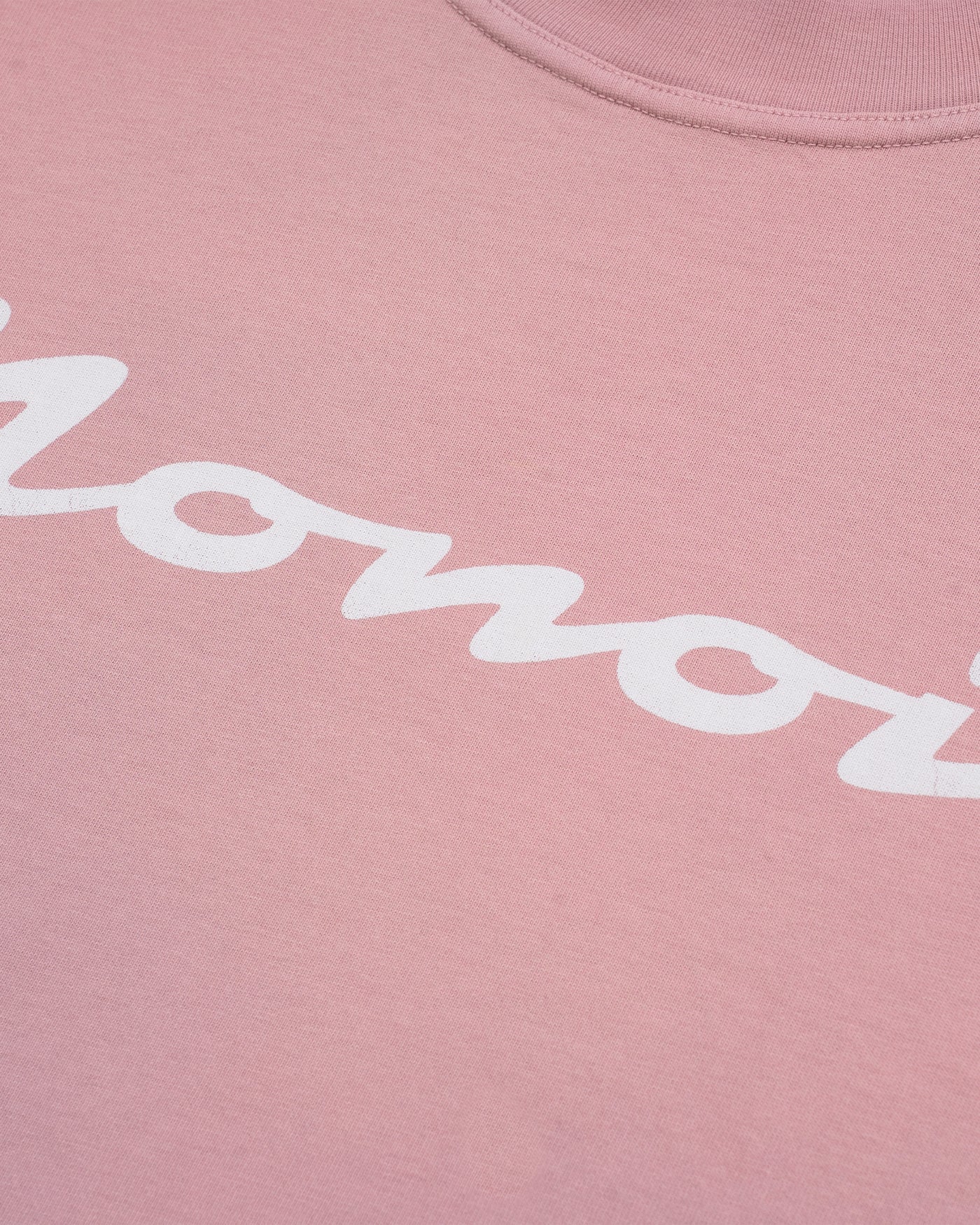 Camiseta Boxy Fit color Rosado Malva, confeccionada en 100% algodón de alto gramaje. En la parte trasera destaca la estrella MONOIC aplicada en corrosión y, en el pecho, “Monoic” centrado en corrosión. Cuenta con cuello redondo en rib y marquilla tejida MONOIC en el lateral izquierdo.
