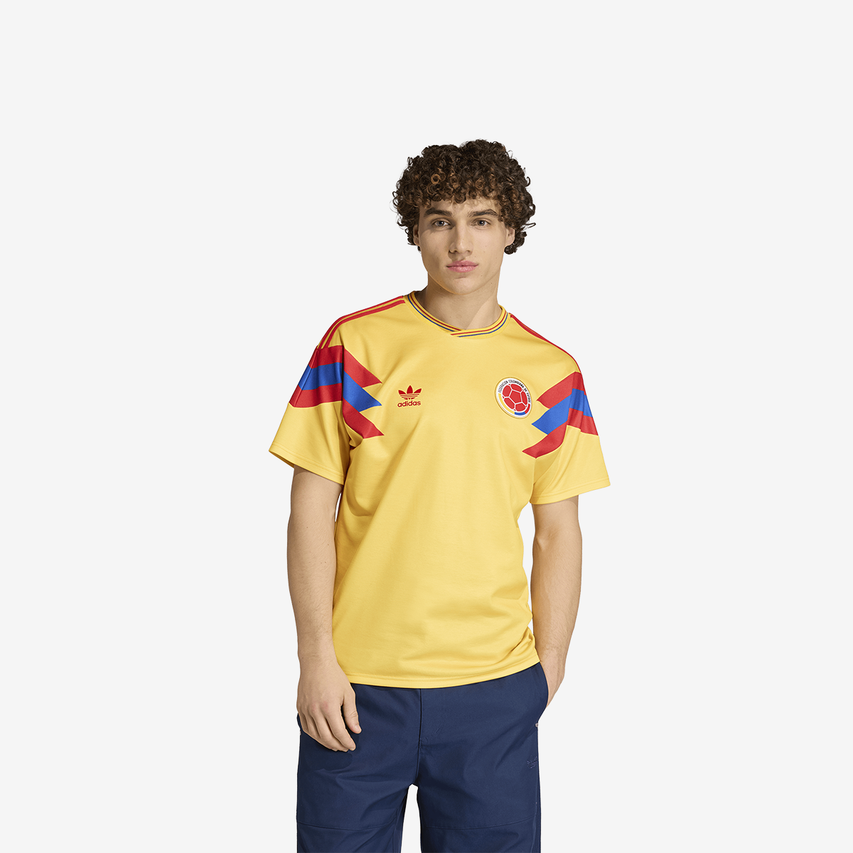 La camiseta visitante de la Selección Colombia 1990 es un homenaje a la época dorada del fútbol. Esta camiseta es una fiel recreación del emblemático diseño de 1990, que captura el espíritu y el estilo de la original. Confeccionada para quienes aprecian la mezcla de herencia y deporte, presenta el escudo clásico y el logo del Trifolio en el pecho, complementados por las 3 Rayas características.