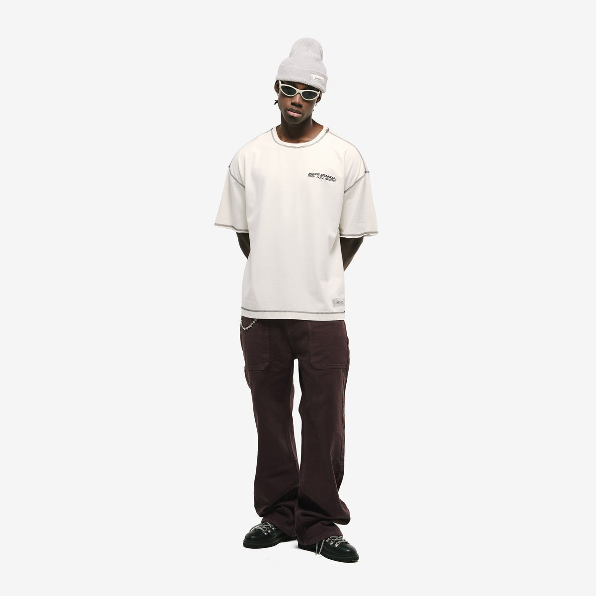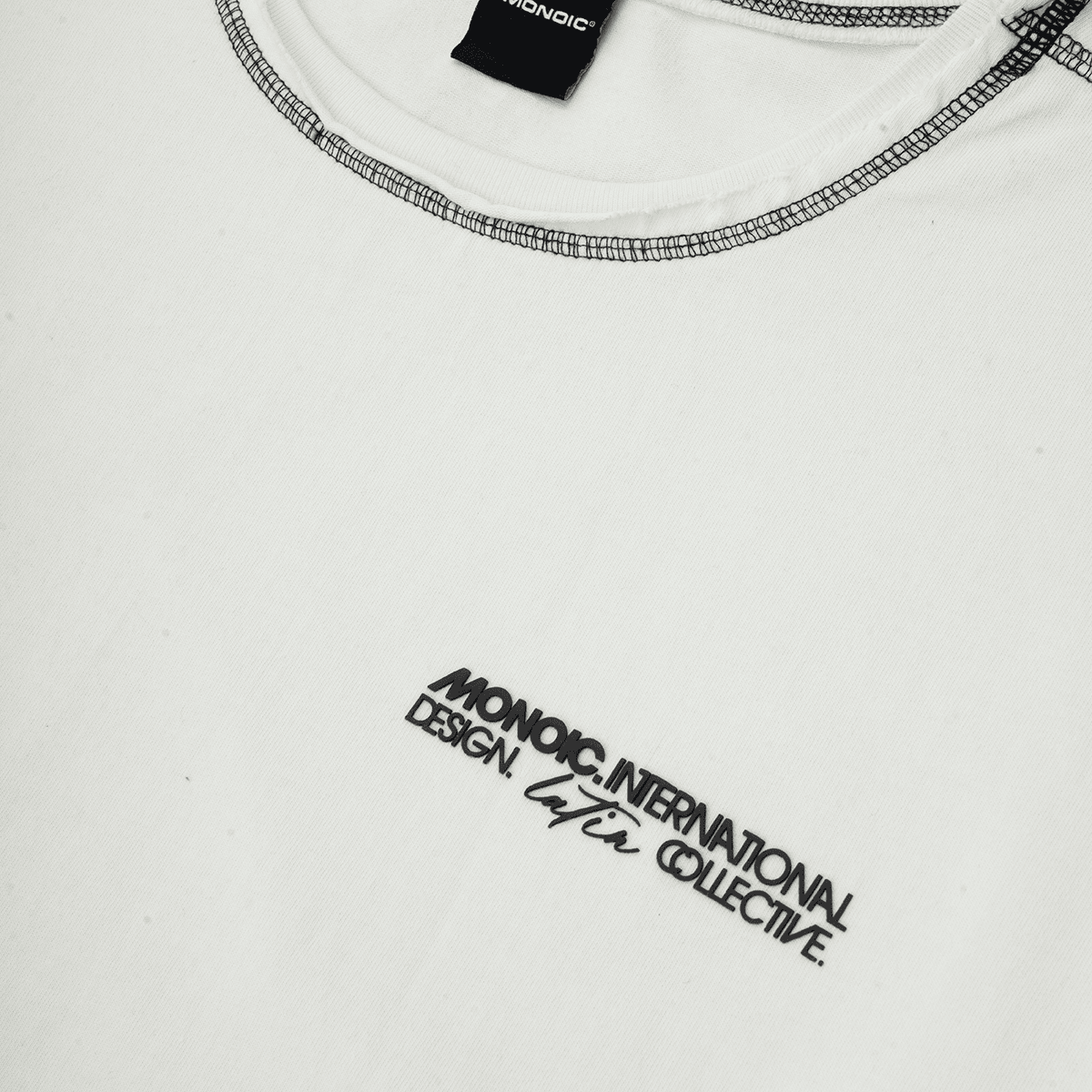 Camiseta Boxy Fit Design Collective en color Off White, confeccionada en 100% algodón de alto gramaje (250 gsm). Nuevo boxy fit: más holgado y con caída en hombros. Costuras en contraste y acabados con desgaste: cuello, mangas y cintura con dobladillo abierto para un look vivido. Estampado en serigrafía de alto relieve en el pectoral izquierdo (punto corazón) y marquilla MONOIC en la cintura del lado izquierdo.