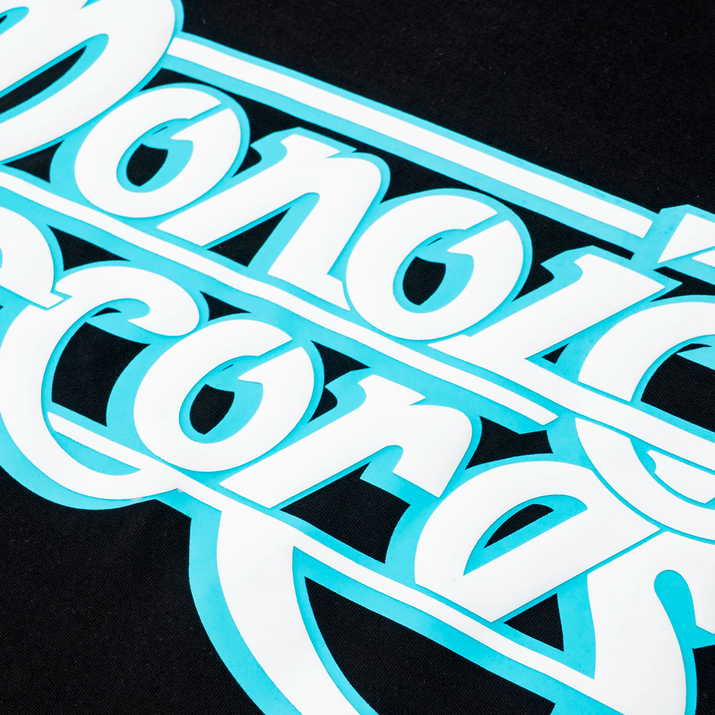 Camiseta con fit oversized en color Negro Oscuro, confeccionada en 100% algodón de alto gramaje (250 gsm). Gráficos “MONOIC RECORDS” en serigrafía de alto relieve en la espalda y en el frente. Incluye marquilla MONOIC en la cintura del lado izquierdo.