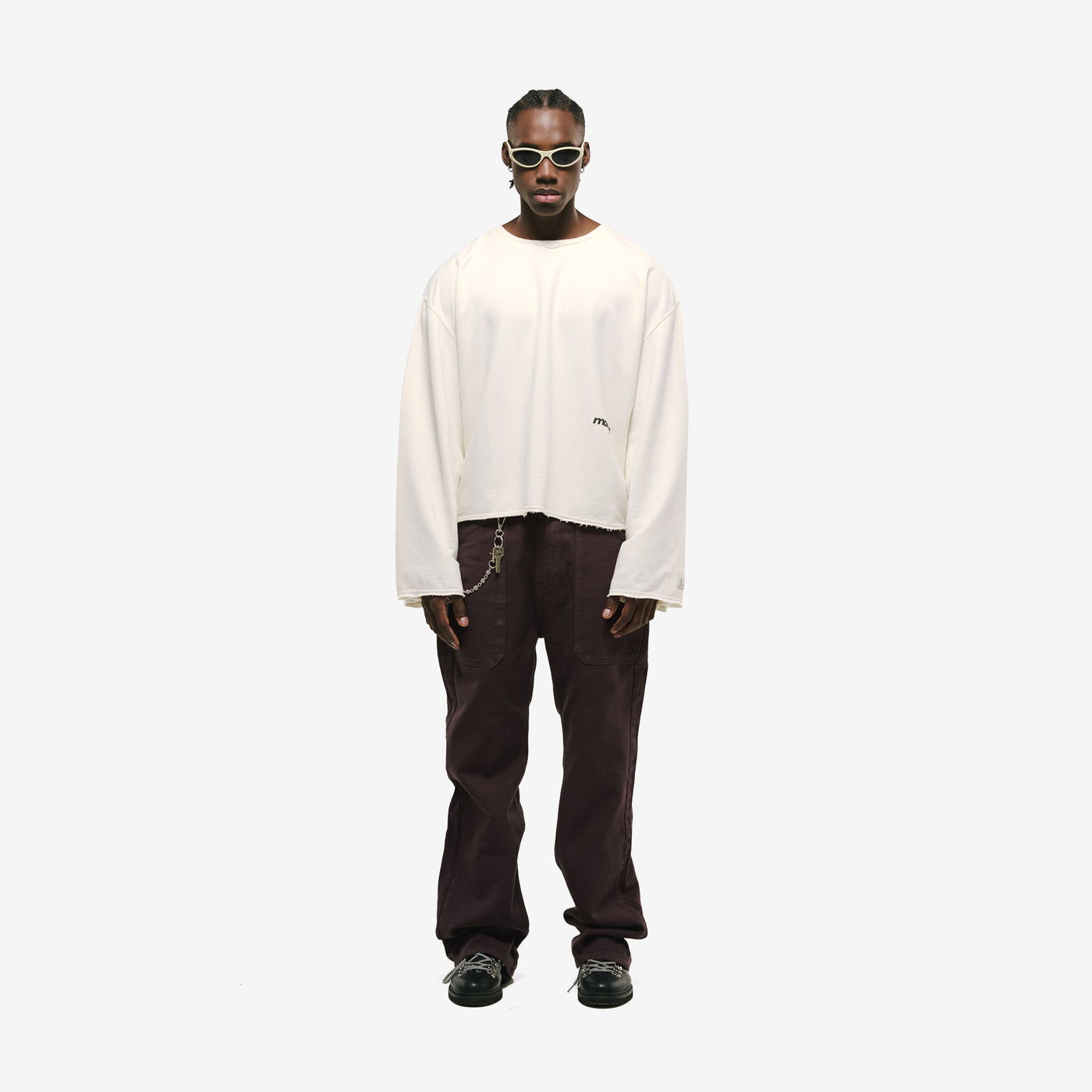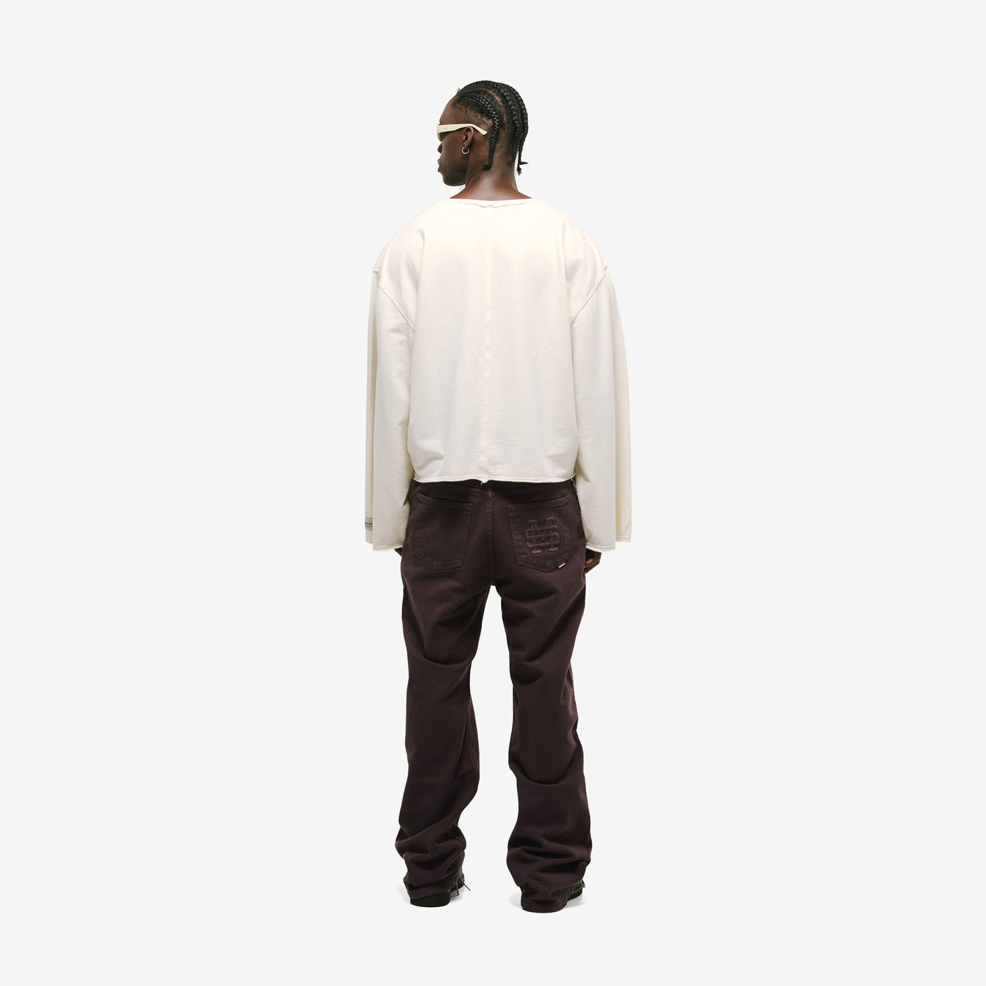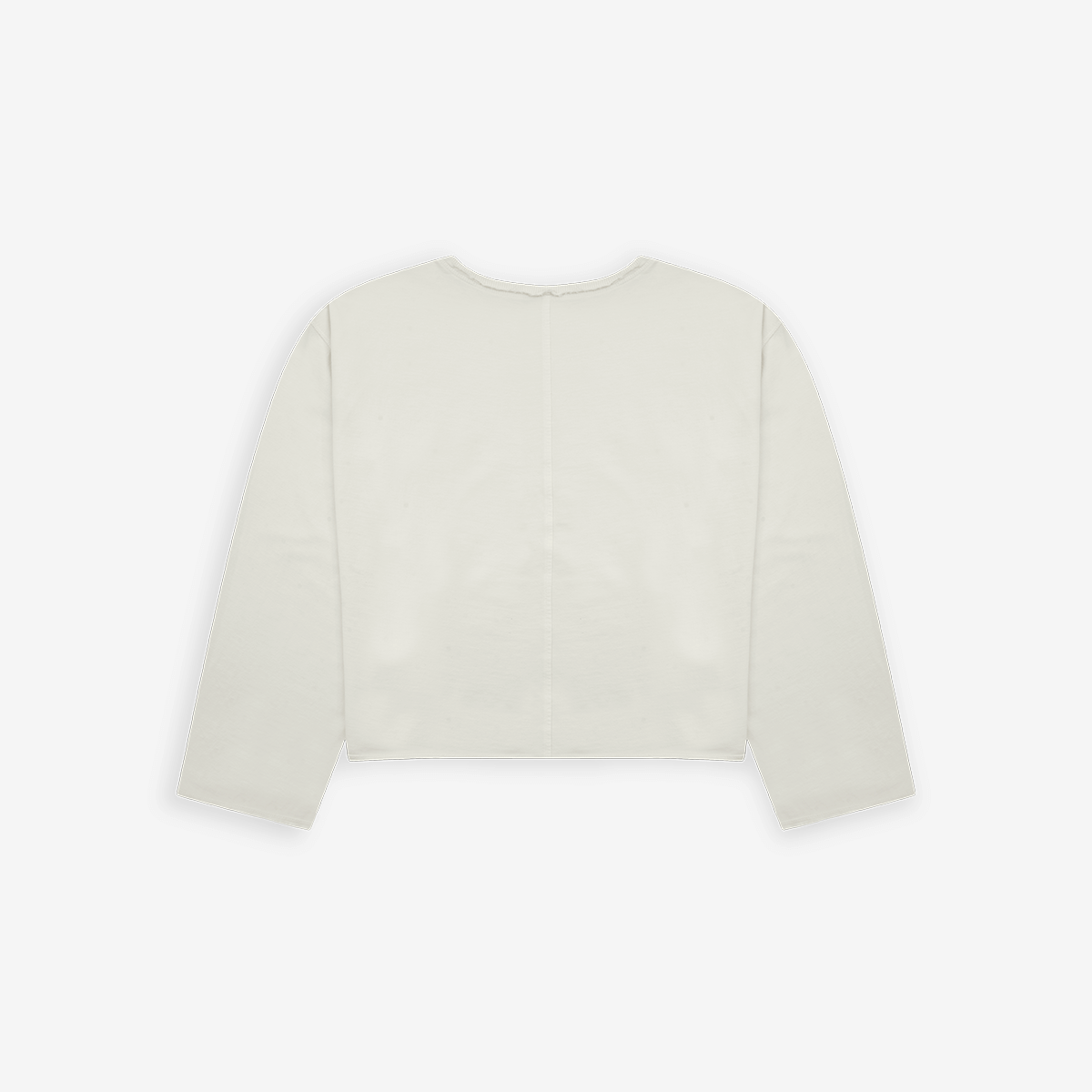 Camiseta de manga larga con fit boxy y mangas anchas, confeccionada en burda 100% algodón (275 gsm). Estética vintage con cuello, cintura y puños con dobladillo abierto y costura vertical expuesta en la espalda. “monoic” bajo la axila en serigrafía de alto relieve y marquilla MONOIC en la manga.