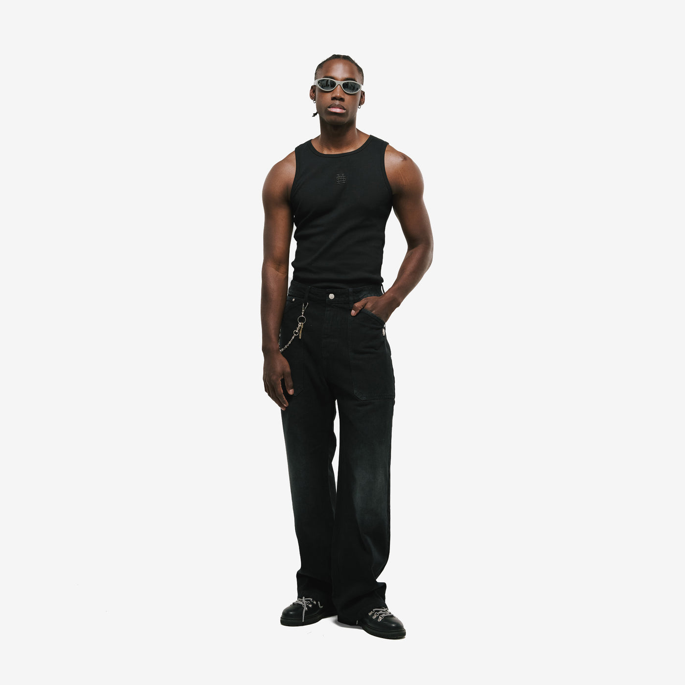Monoic Pocket Straight Pants – Negro Desgastado - XS