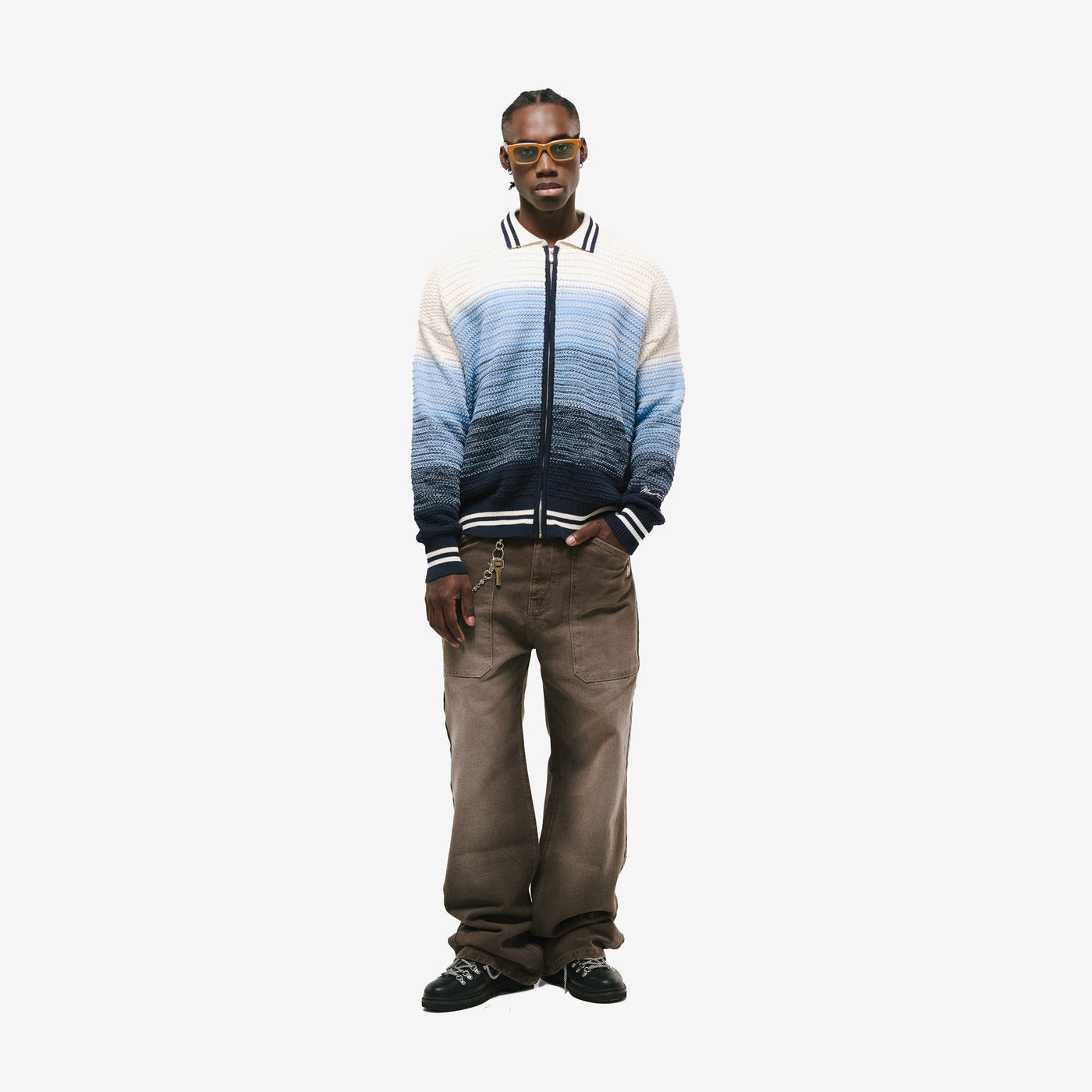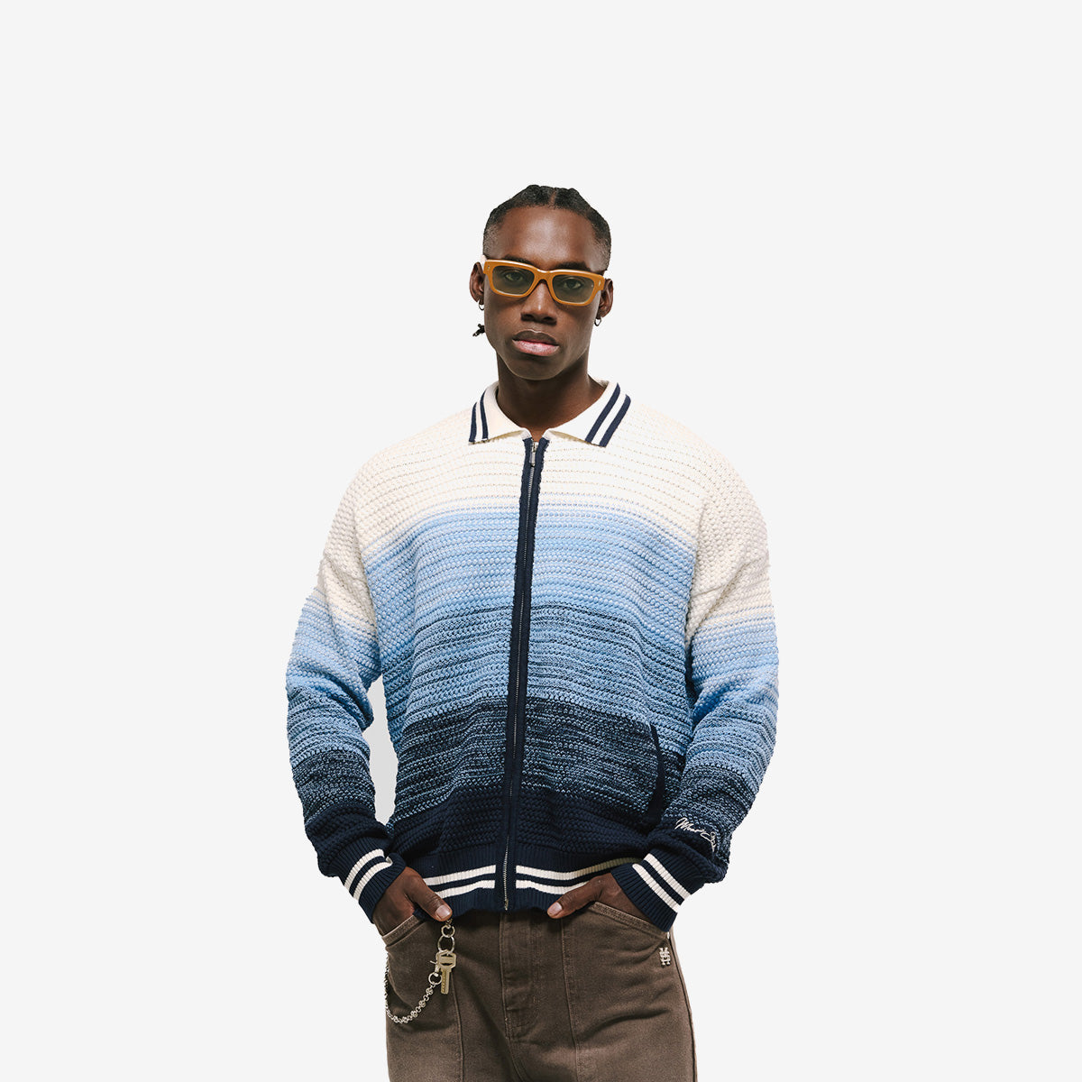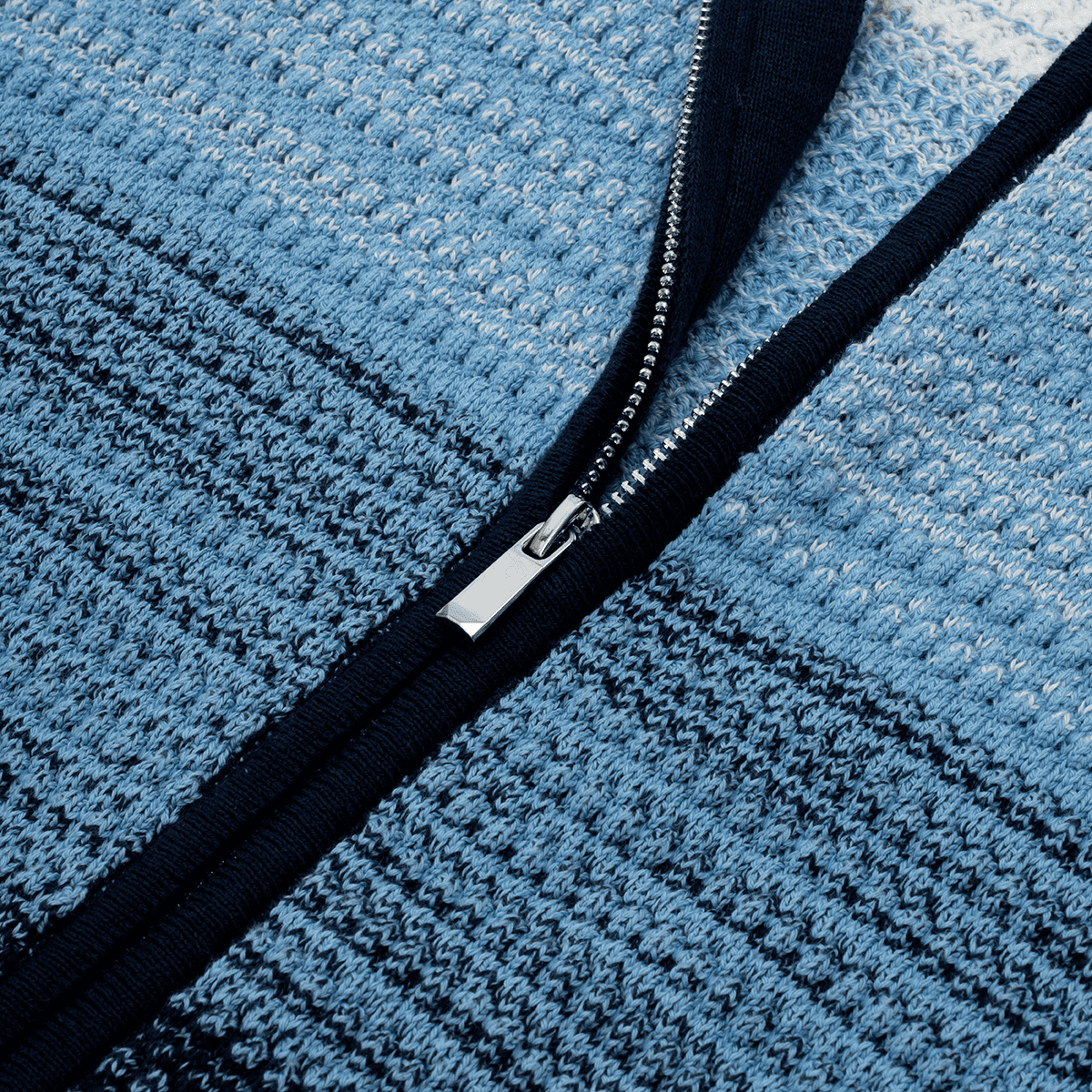 Monoic Zip Polo Gradient Knitwear - Azul y Crema - XS