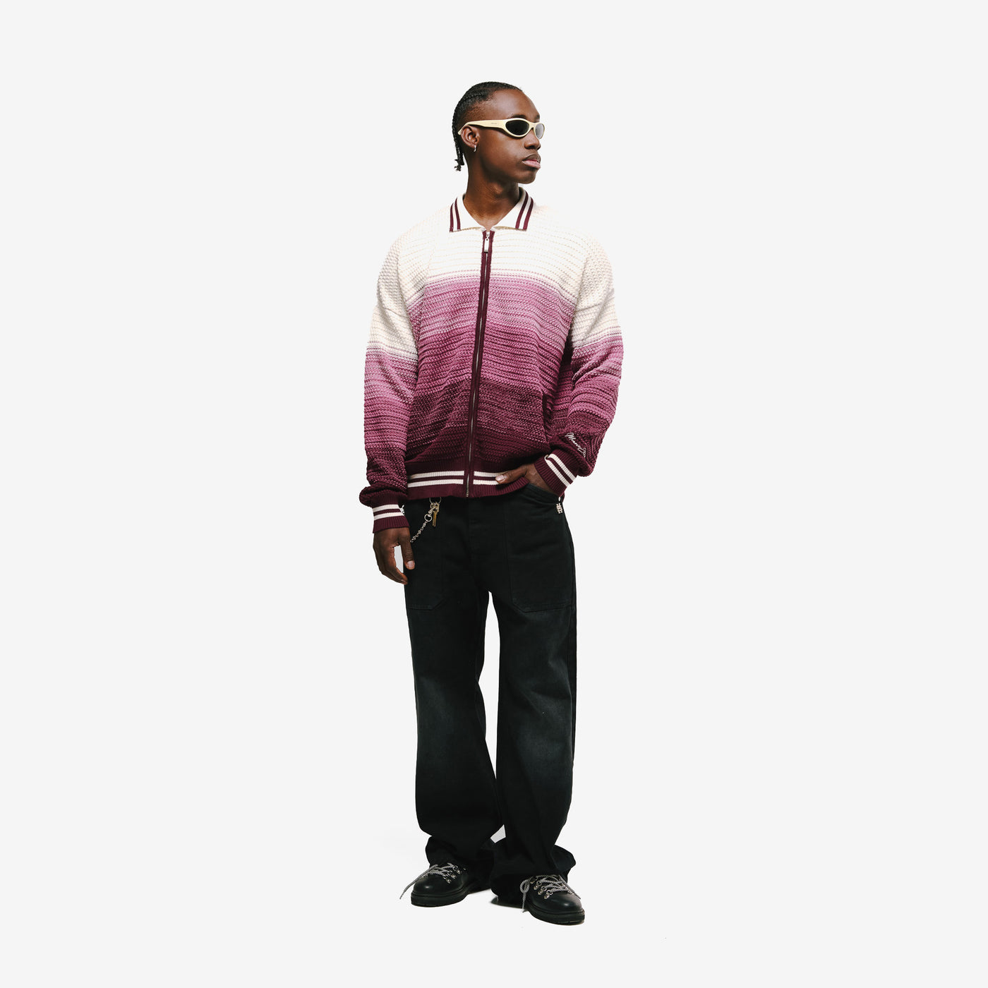Monoic Zip Polo Gradient Knitwear - Burgundy y Crema