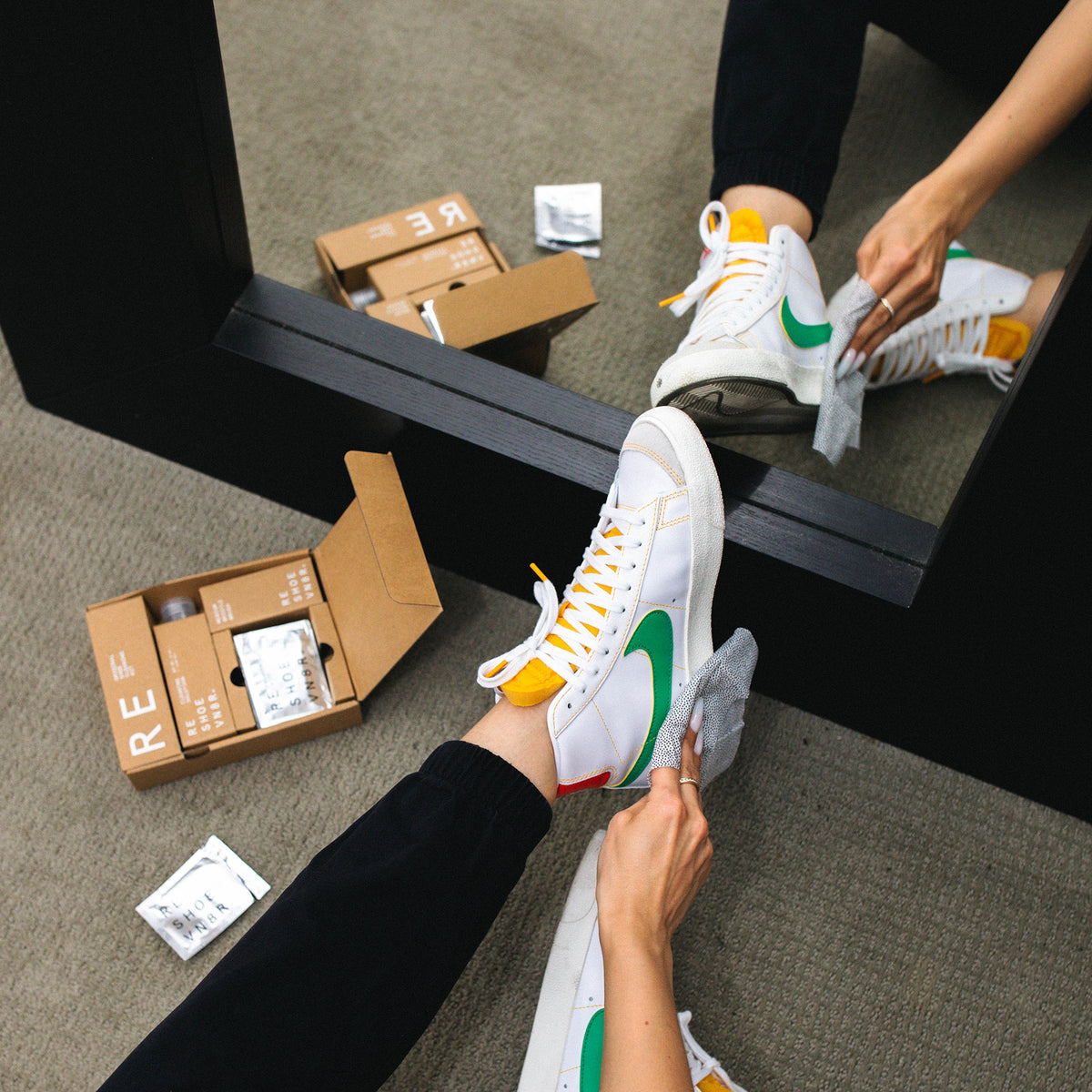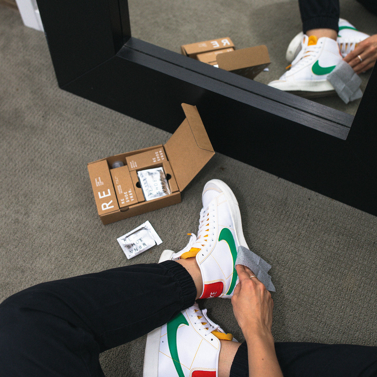 .Vierta 100ml de agua en un recipiente, mezcle con 5ml de solución de limpieza. Remoje el cepillo en la solución de limpieza. Aplique en la superficie del zapato delicadamente, seque con una toalla el exceso de producto.