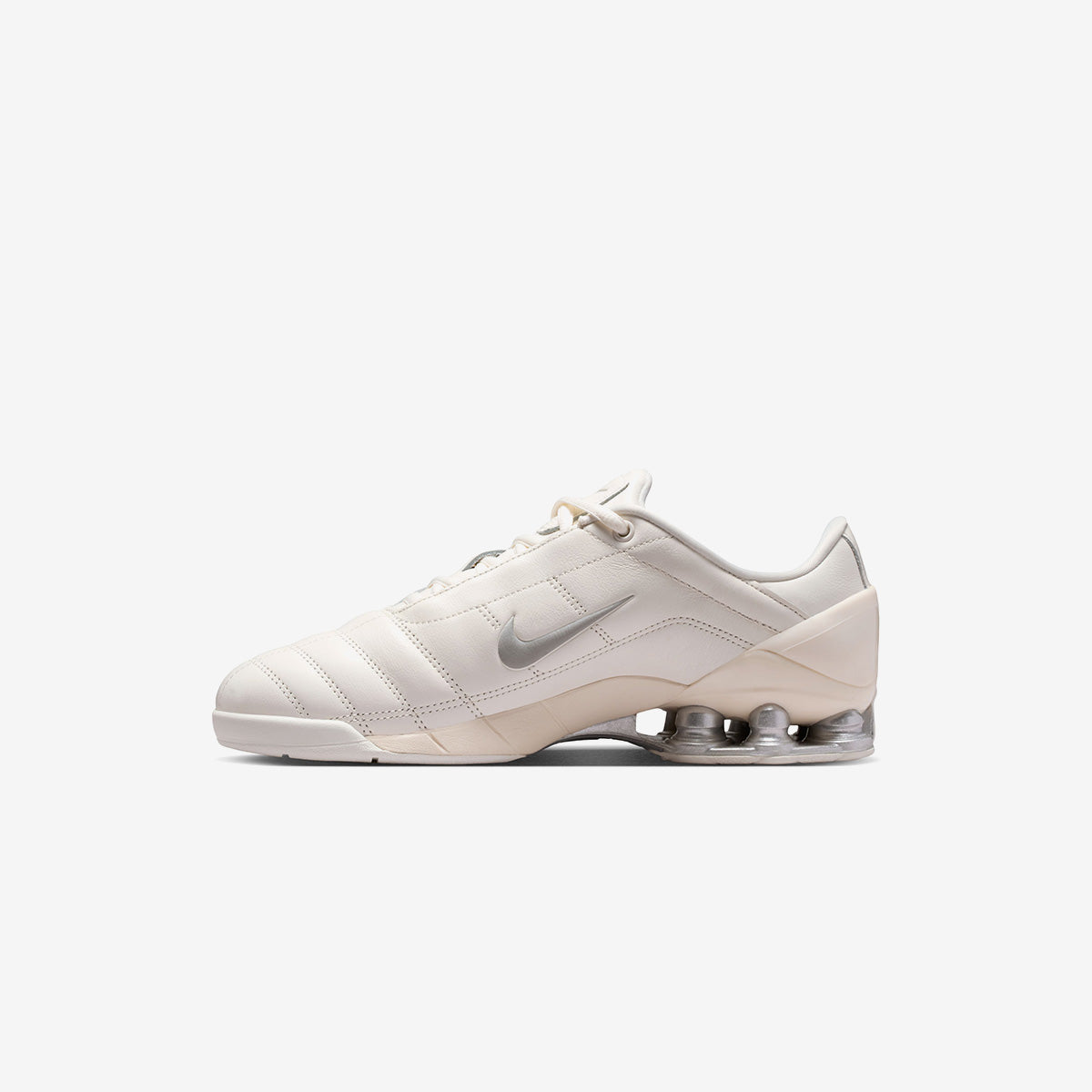 Las Magia evocan la nostalgia de principios de los años 2000 al combinar la esencia icónica de las Total 90 con la amortiguación superior de la tecnología Shox. Y ahora destacan por su elegancia. La piel premium de color sail se combina con los detalles en plata metalizado de la tecnología Shox, la bandeleta y el Swoosh para crear un look limpio realzado con toques futuristas.