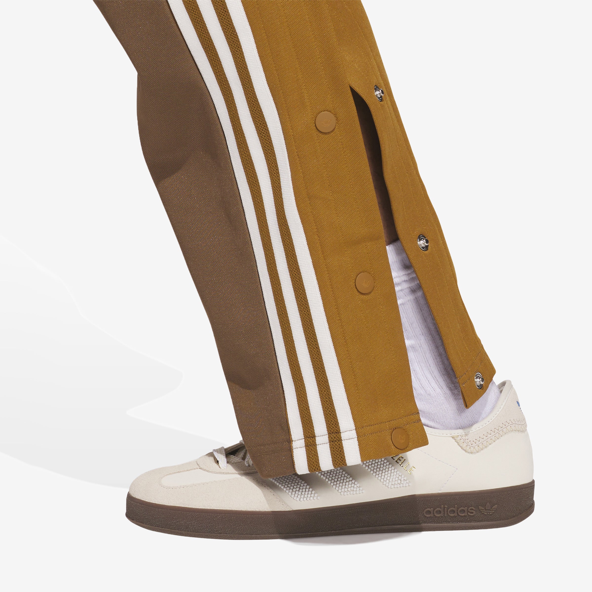 Estos pantalones Adibreak experimentan con un lenguaje de diseño retorcido. La parte delantera y trasera están hechas con diferentes colores, divididas por los laterales con botones a presión que también se complementan con las clásicas 3 rayas.