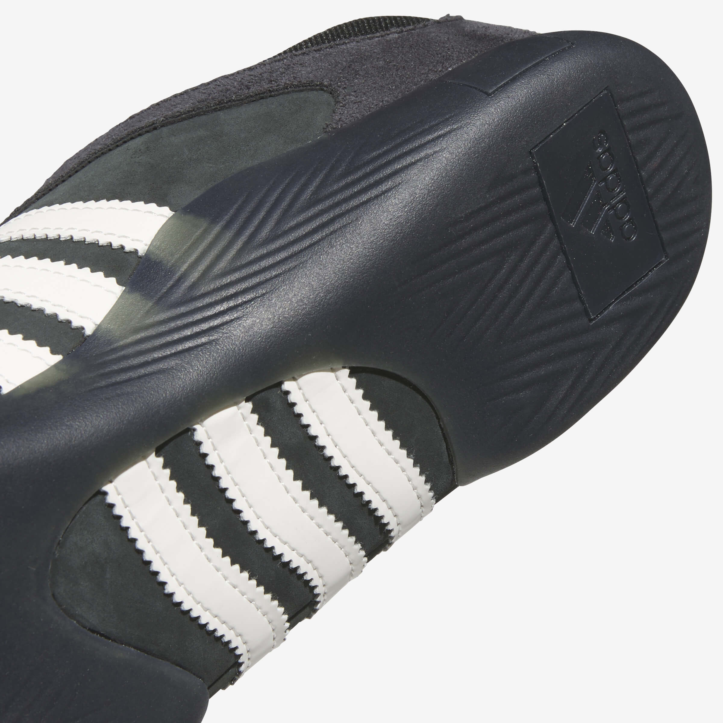 La adidas Originals x Bad Bunny Ballerina toma inspiración en el icónico modelo Taekwondo de adidas, creado originalmente para artistas marciales en el apogeo de su deporte a principios de los 2000. La Ballerina fusiona una estética moderna y estilizada con un guiño a su herencia de rendimiento. Con detalles de ante de alta calidad en la puntera y el talón, su diseño fluido y los cordones elásticos proporcionan un ajuste seguro y contemporáneo. La zapatilla también presenta un distintivo logo "Benito" cerca de las Tres Bandas y una etiqueta especial en el exterior, como recuerdo de sus anteriores colaboraciones con Adidas.