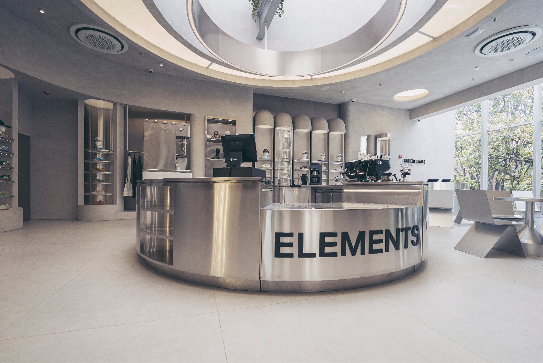 Este concepto refleja una estética minimalista y elegante con una atmósfera que enriquece la experiencia gastronómica. La mezcla de diseño y funcionalidad convierte a Elements en un destino donde la cultura del café y el street culture se encuentran en armonía.
