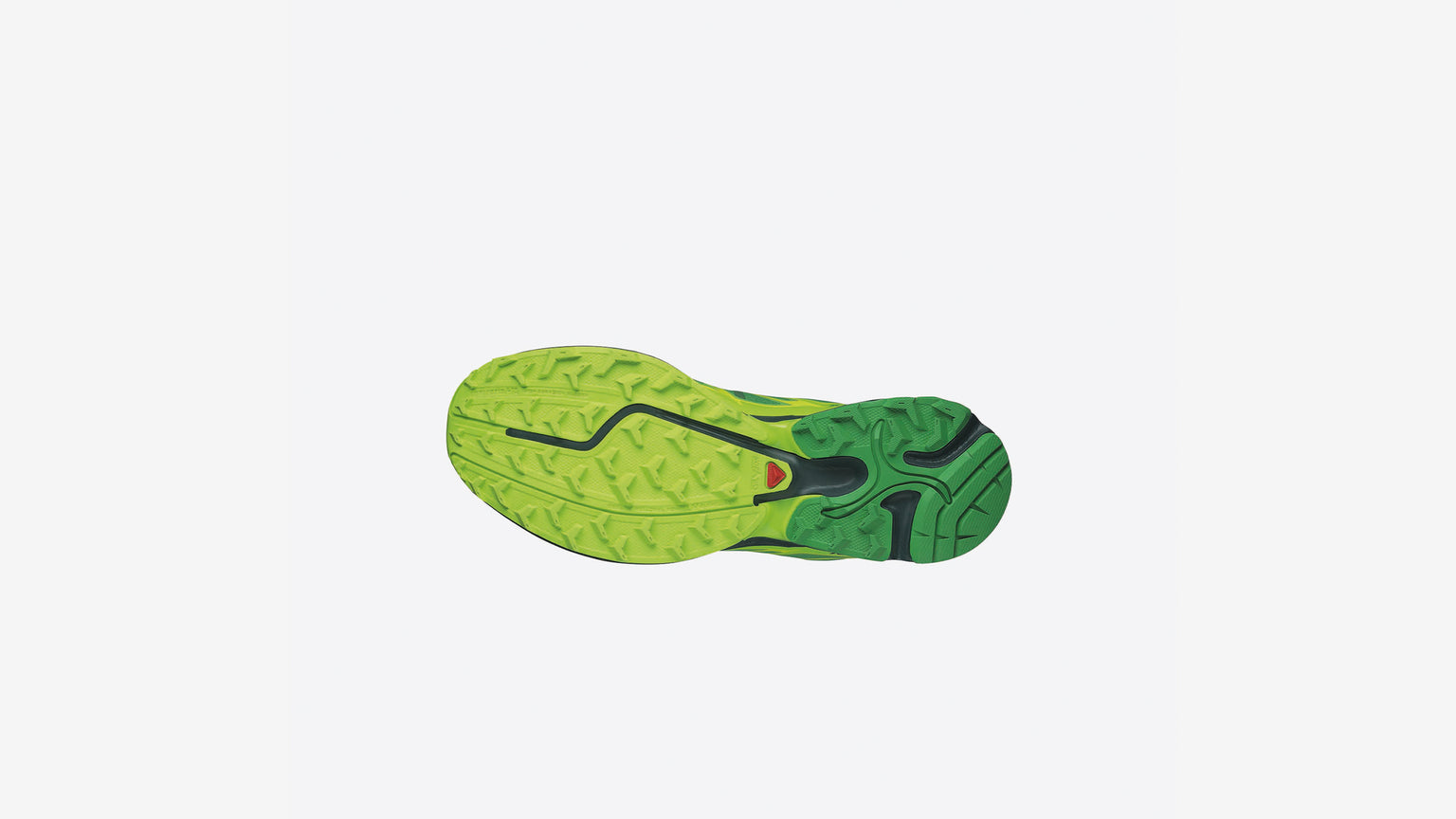 Diseñada para el trail running, esta silueta presenta una parte superior de malla anti-escombros en tono verde brillante, con capas Sensifit en relieve y una puntera sintética para mayor resistencia. Los detalles en color voltio y el distintivo “FXXOMOR” en el empeine rinden homenaje al universo visual del Ferxxo, mientras que el logotipo de Salomon y la tradicional etiqueta lateral completan su estética deportiva.
